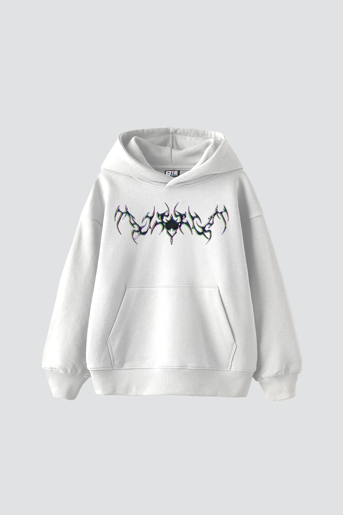 FORGET HOLOGRAM BASKILI OVERSİZE UNİSEX PREMİUM BEYAZ HOODİE