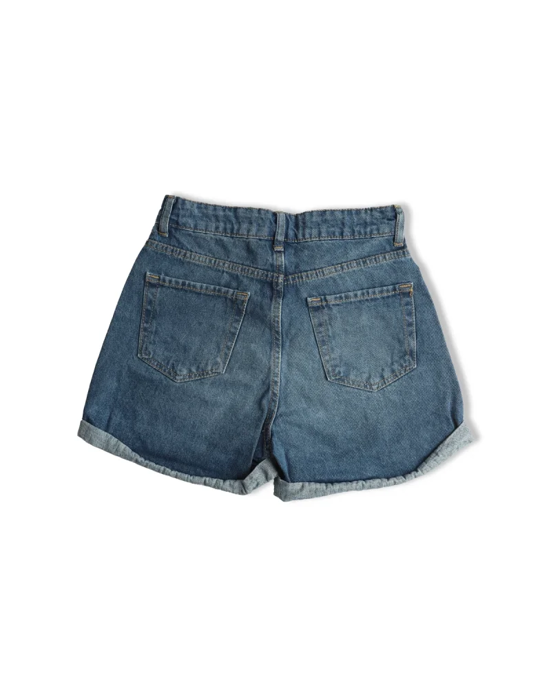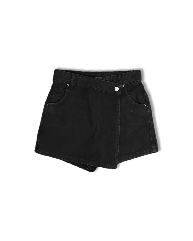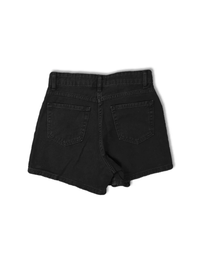 Cep detaylı Pat Kapatmalı Siyah Kot Şort