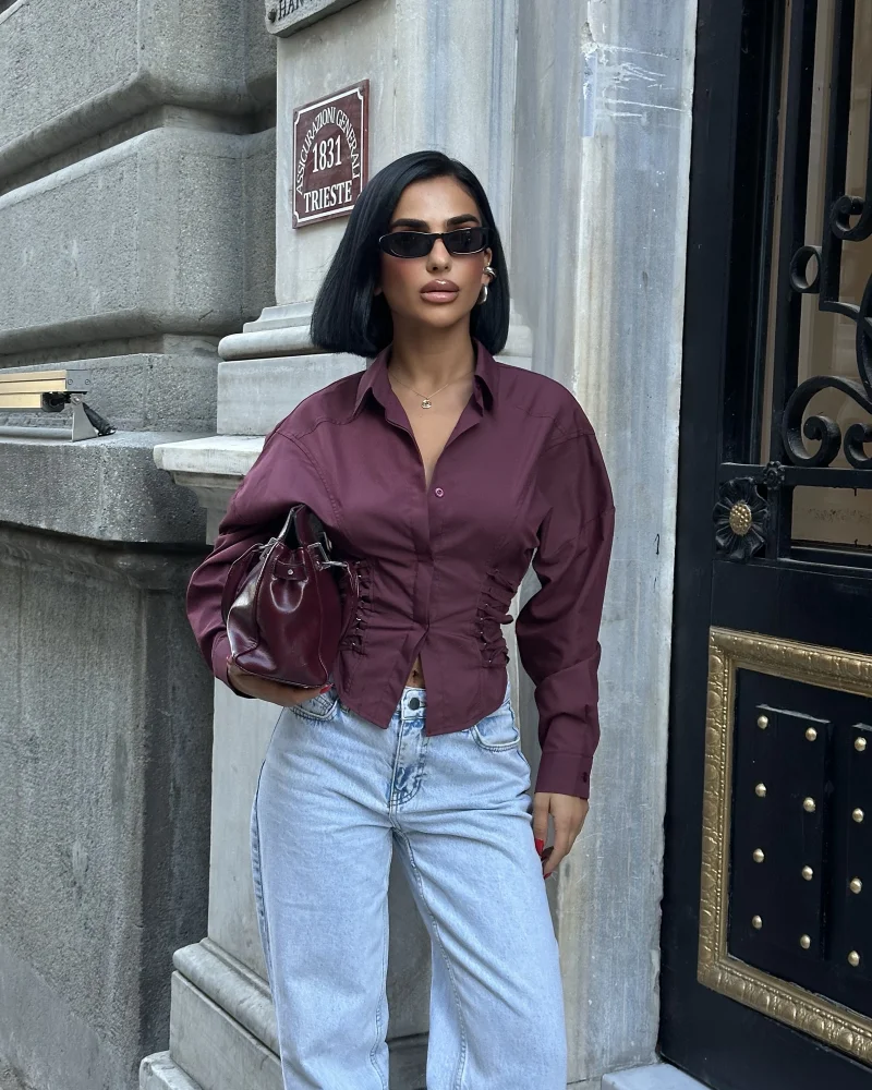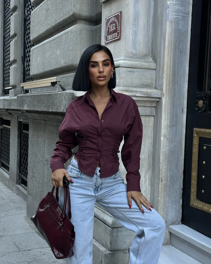 Cep Detaylı Basic Premium Polo Yaka Bordo Ceket