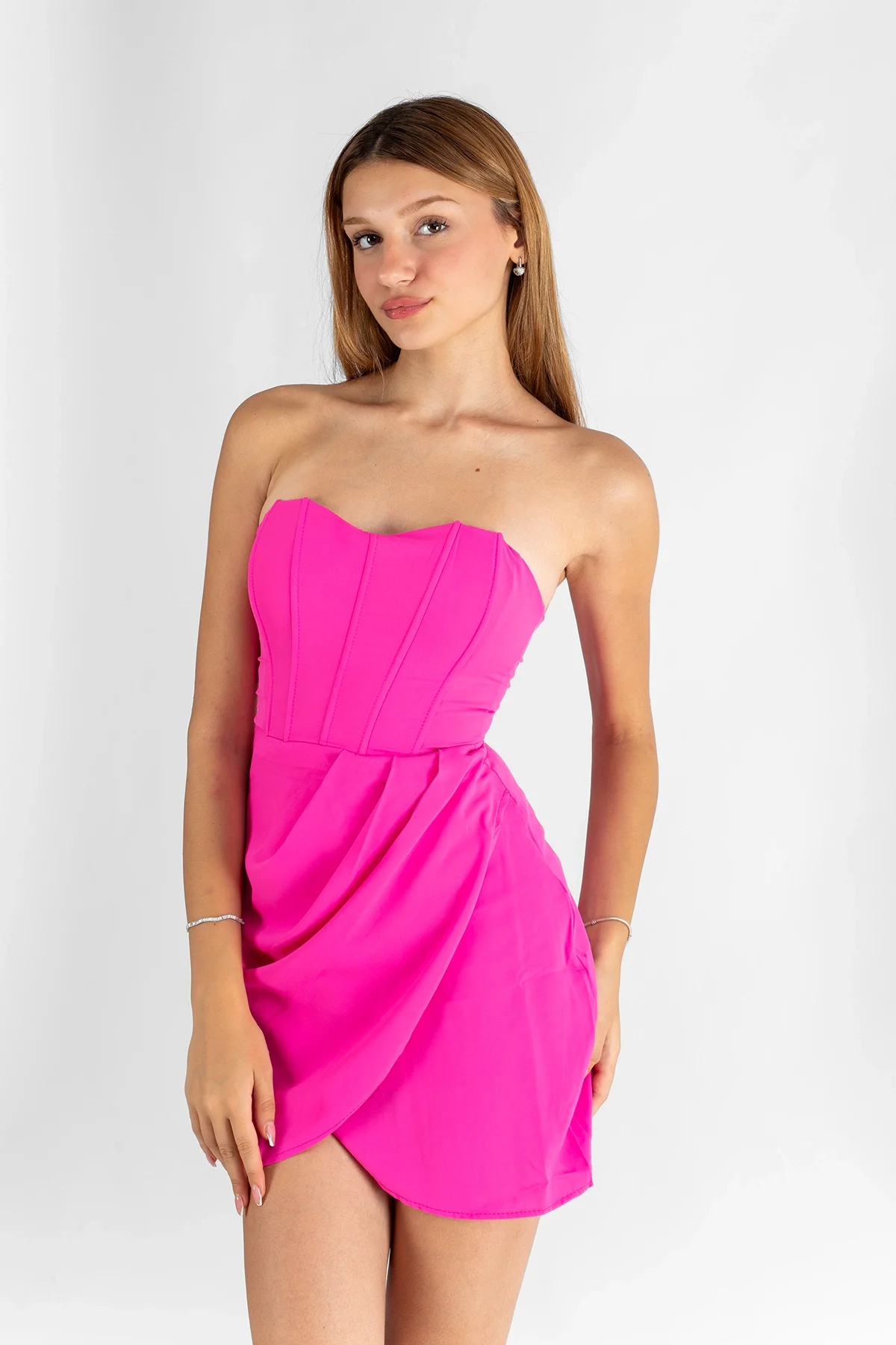Korse dikiş detaylı straplez üst tasarım