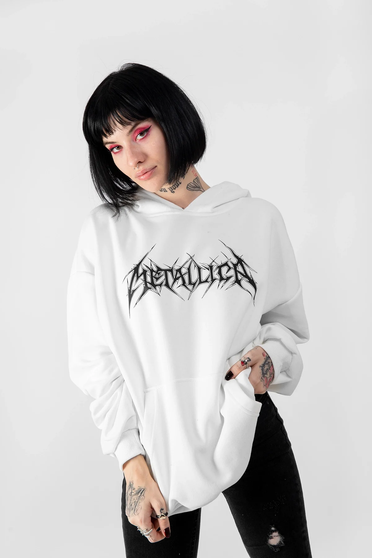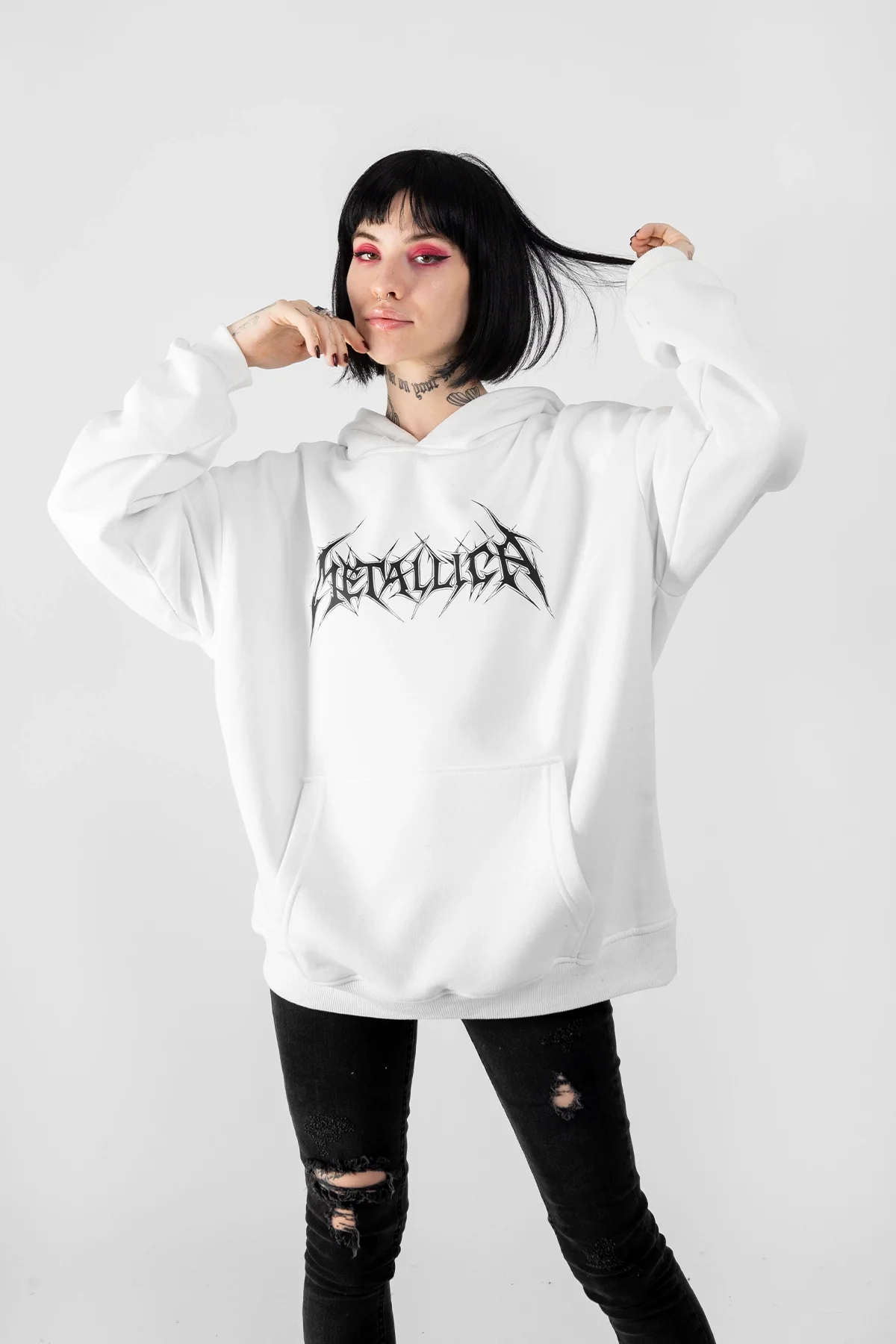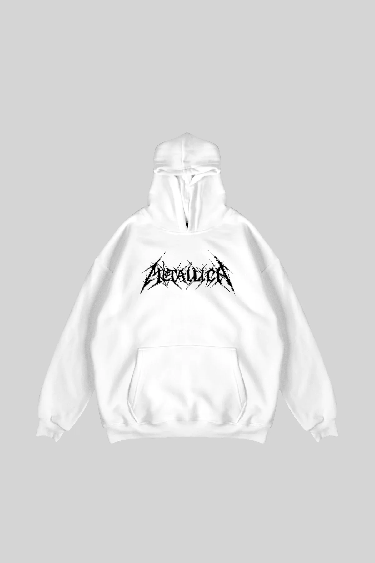 METALLİCA LOGO BASKILI OVERSİZE UNİSEX BEYAZ HOODİE