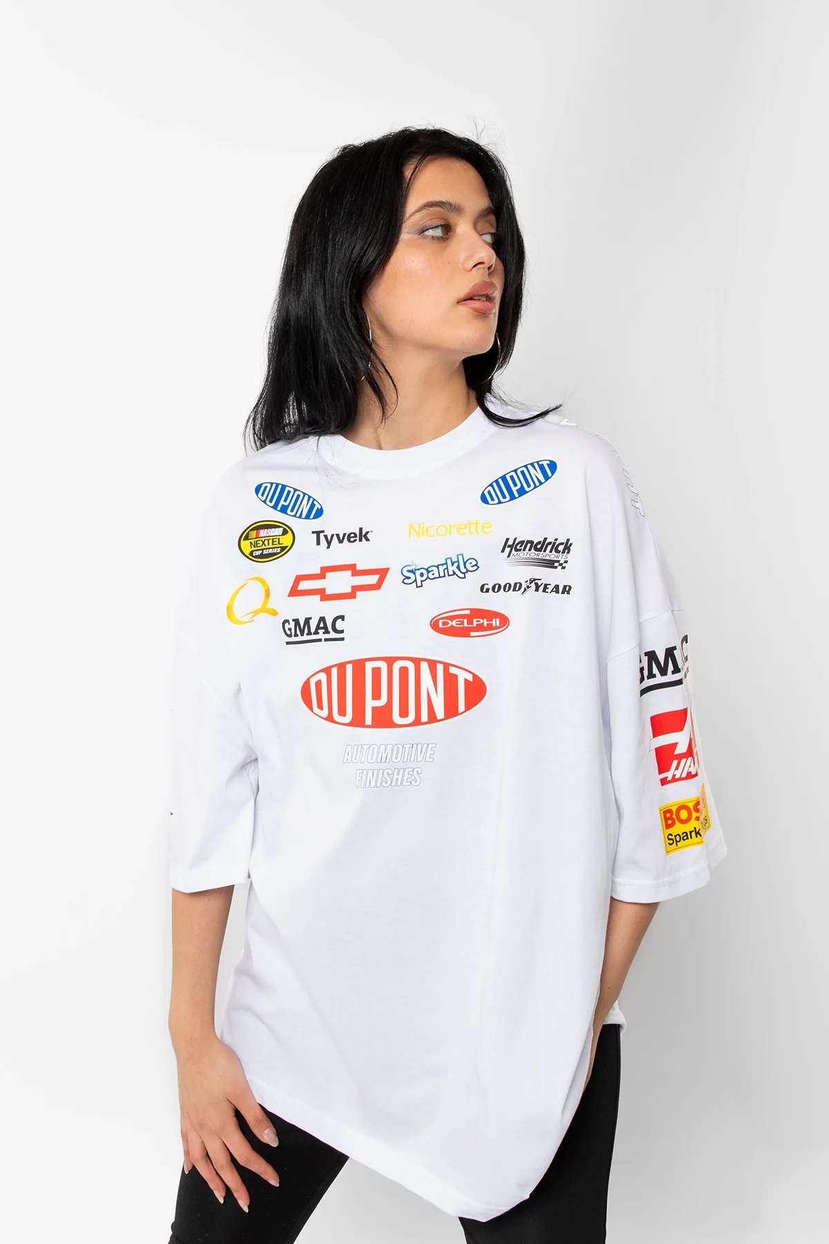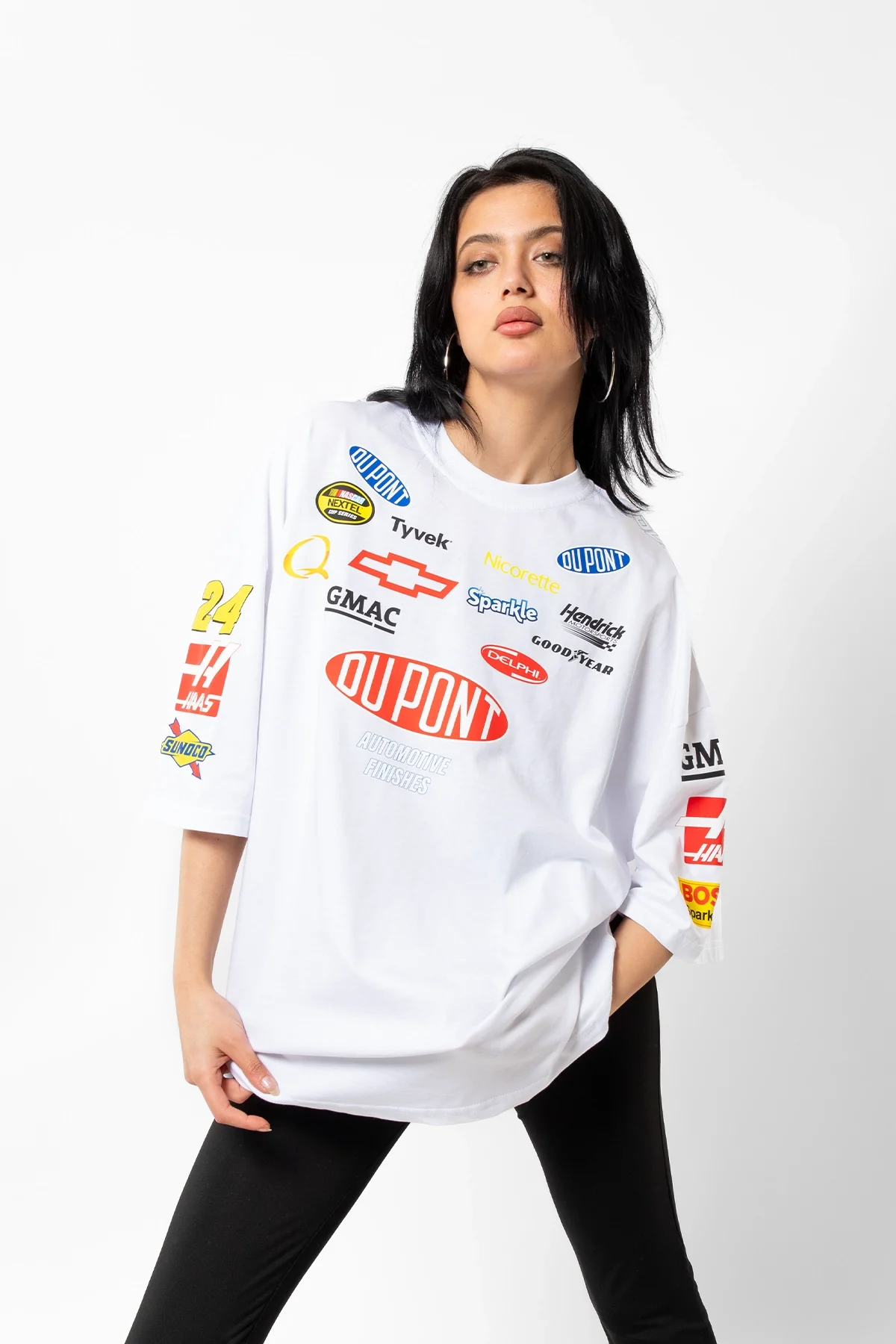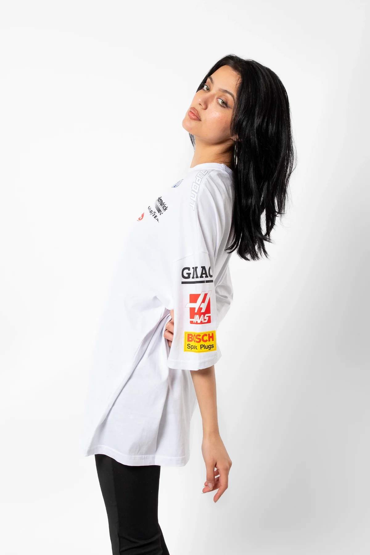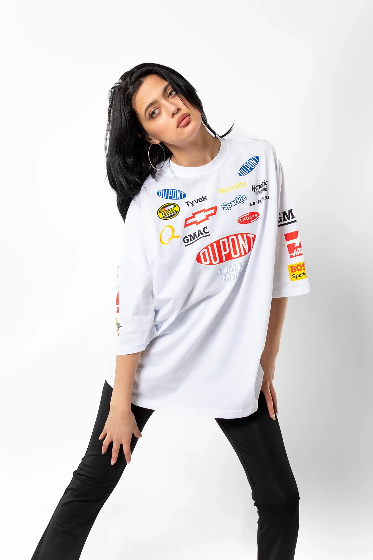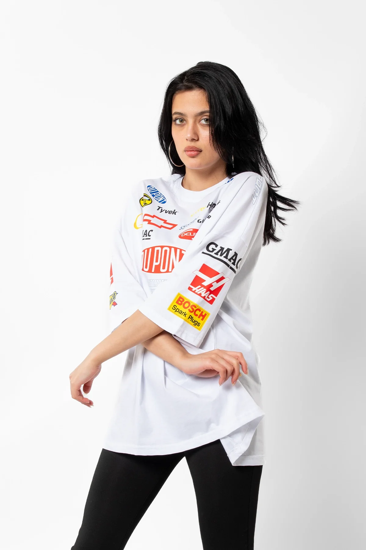 RACİNG FLAME BASKILI OVERSİZE UNİSEX BEYAZ TSHİRT