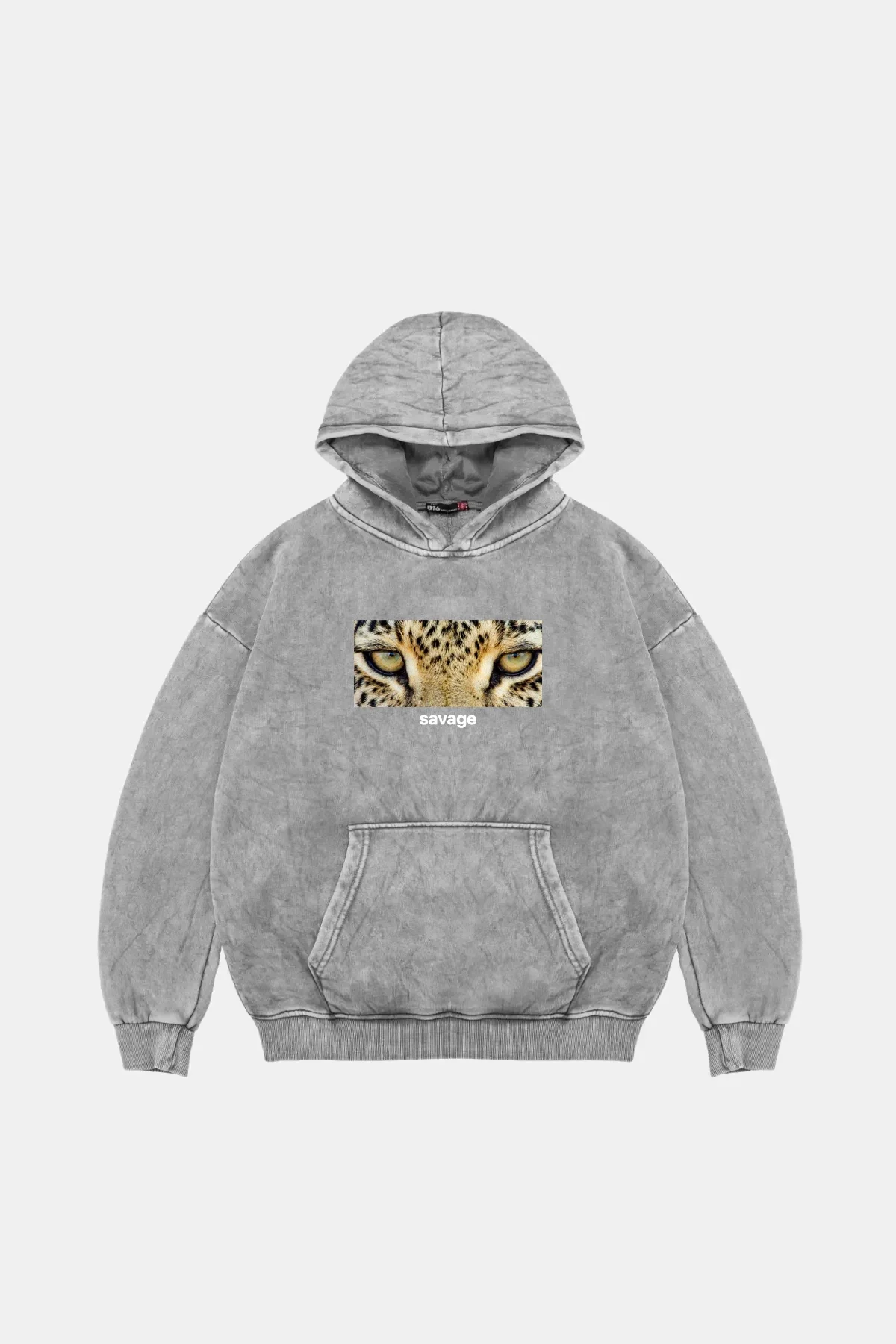 SAVAGE BASKILI OVERSİZE UNİSEX PREMİUM YIKAMALI BEYAZ HOODİE