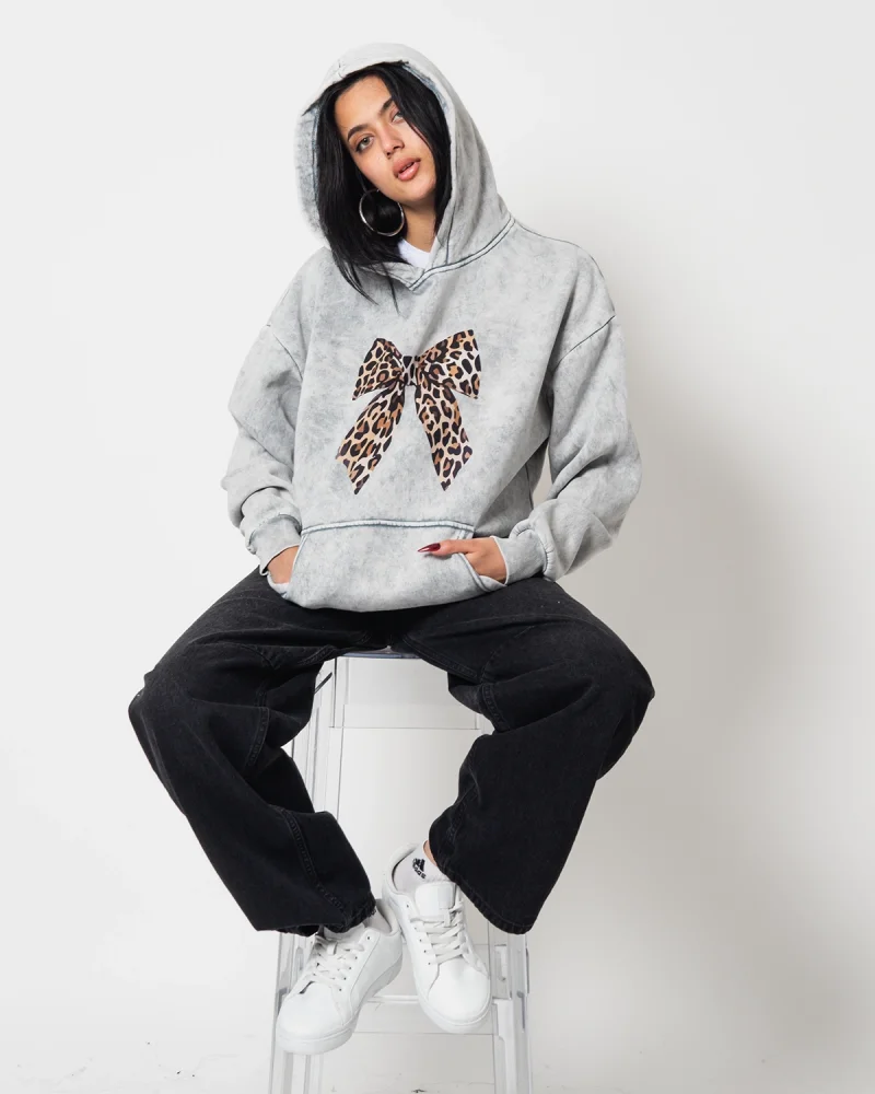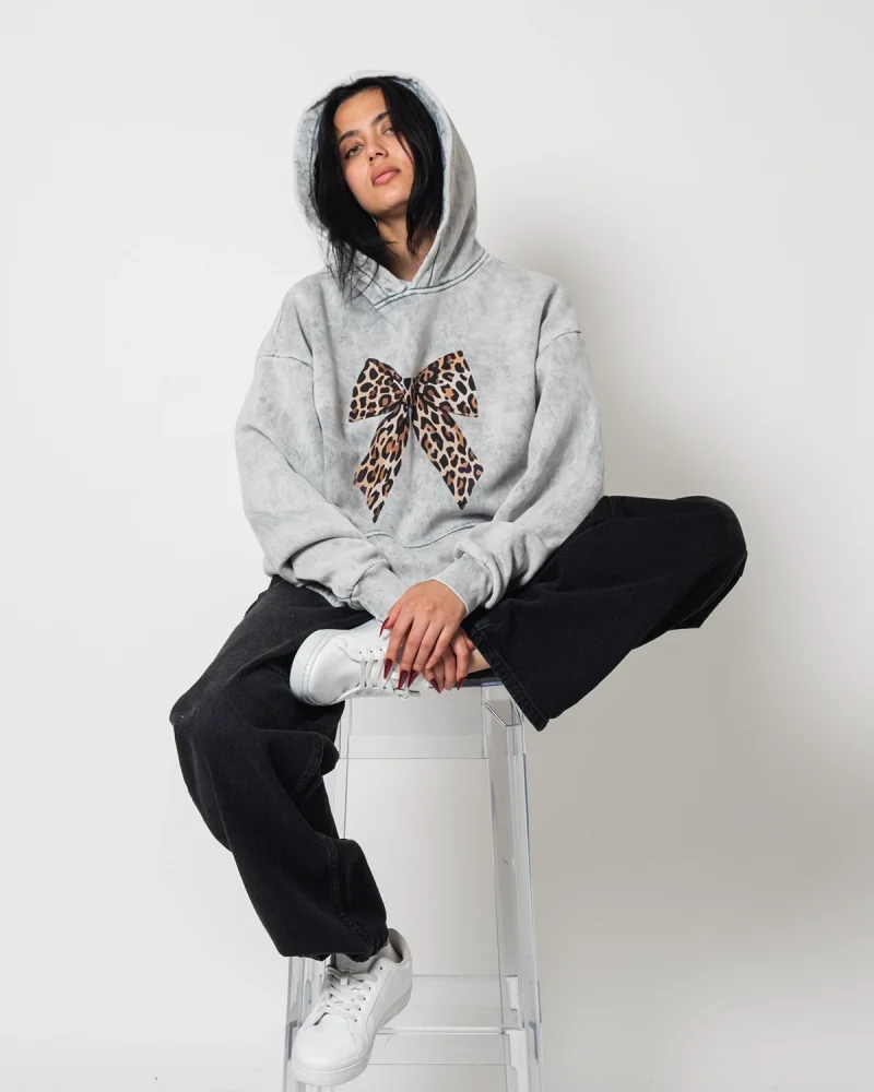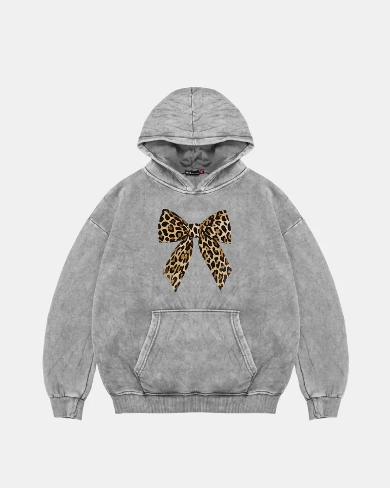 Fiyonk Leopar Baskılı Oversize Unisex Premium Yıkamalı Beyaz Hoodie