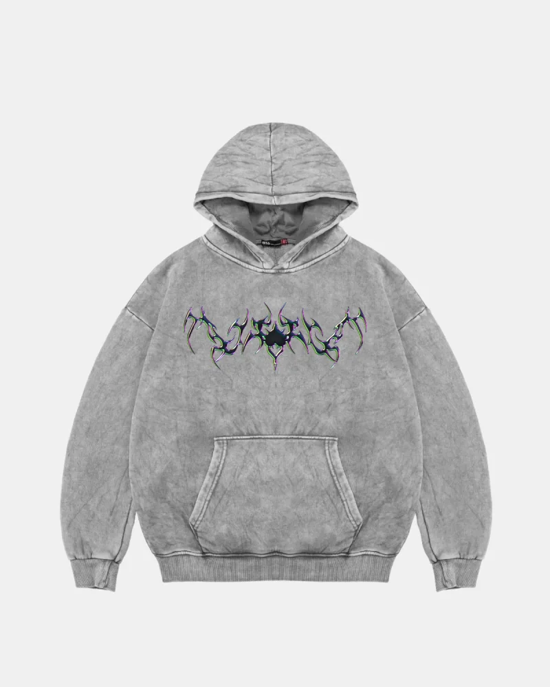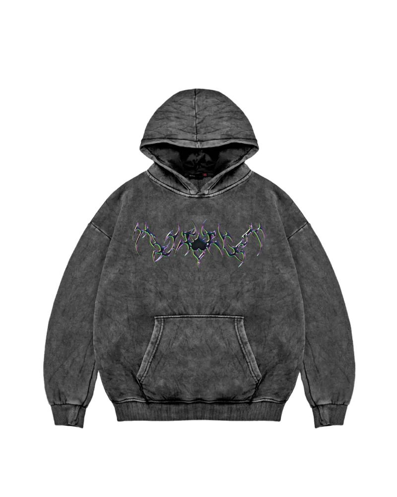Forget Hologram Baskılı Oversize Unisex Premium Yıkamalı Siyah Hoodie