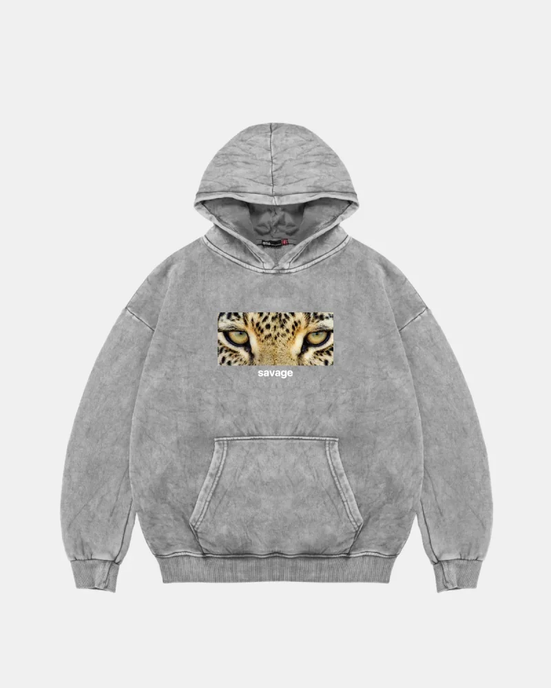 Savage Baskılı Oversize Unisex Premium Yıkamalı Beyaz Hoodie