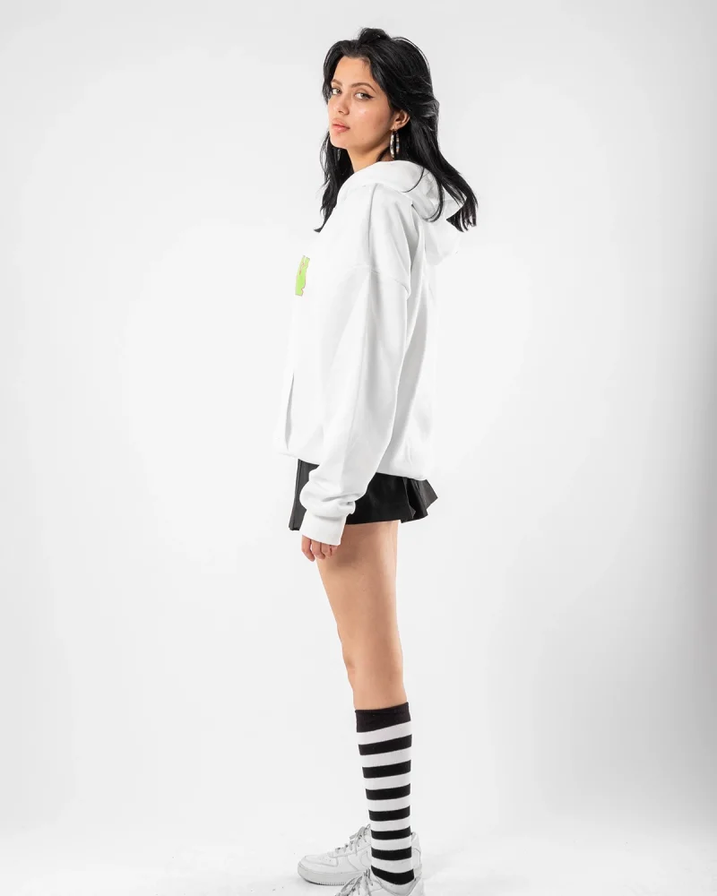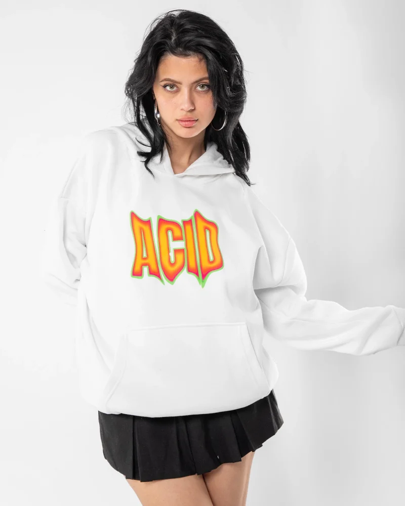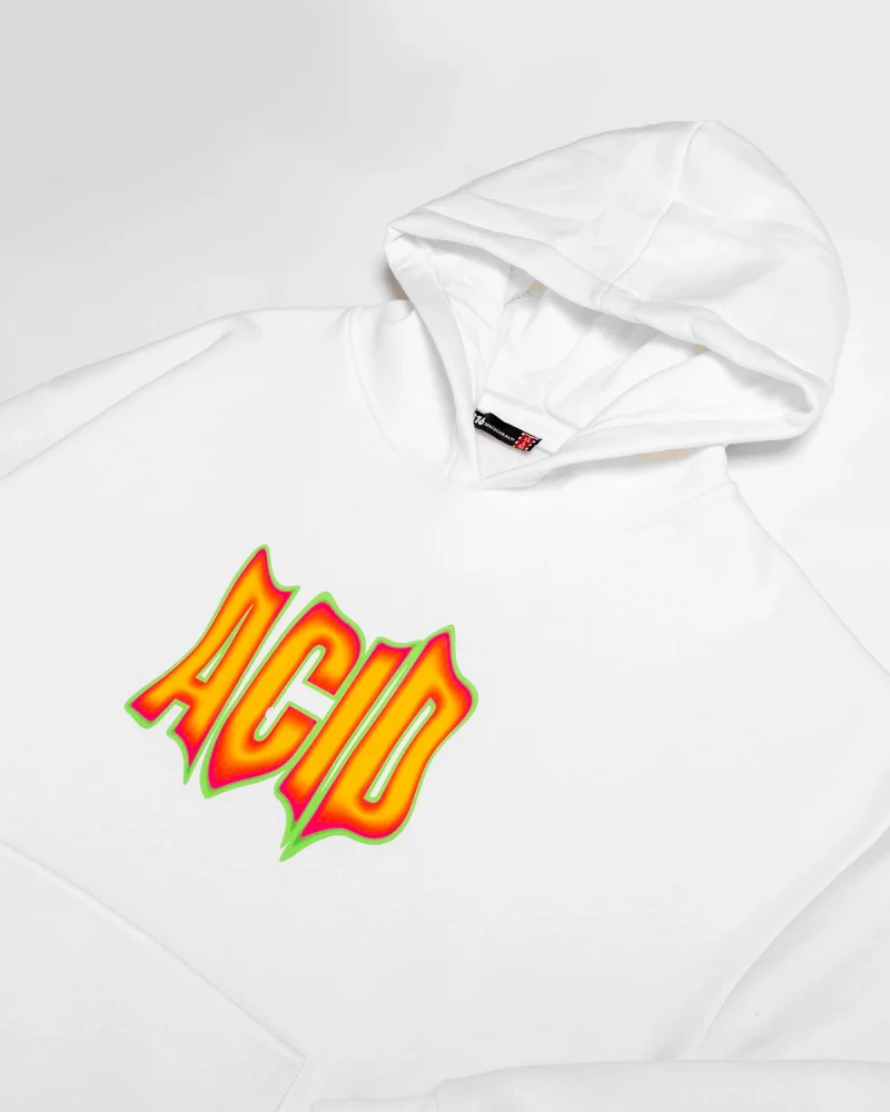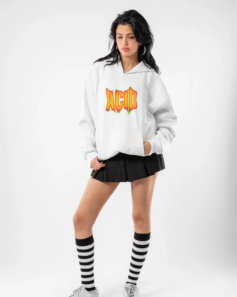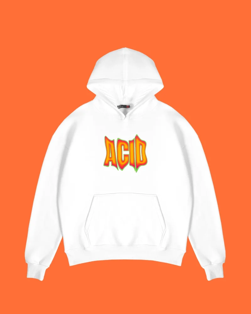 Acid Baskılı Oversize Unisex Beyaz Hoodie