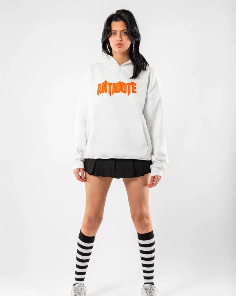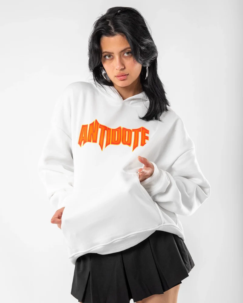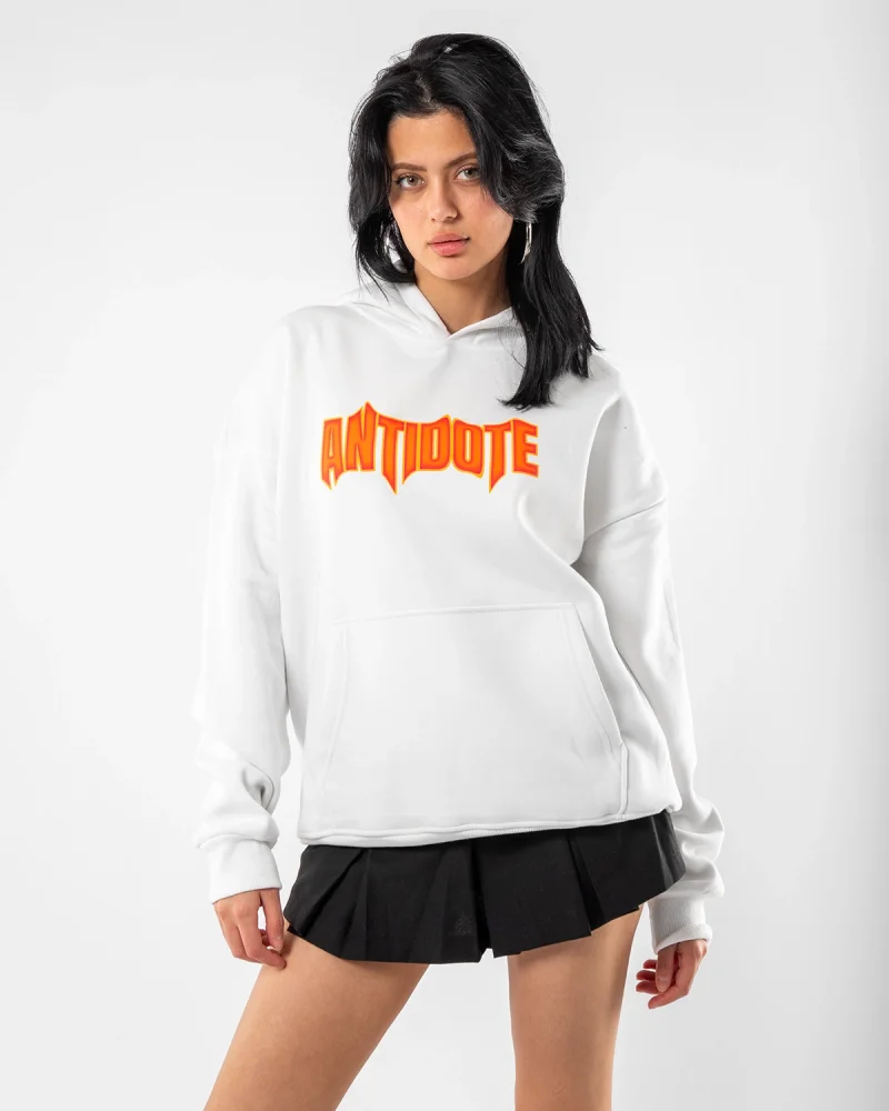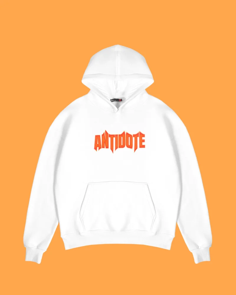 Antidote Baskılı Oversize Unisex Beyaz Hoodie