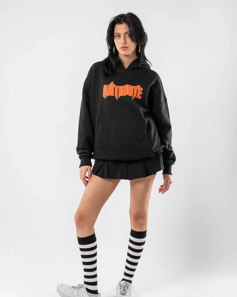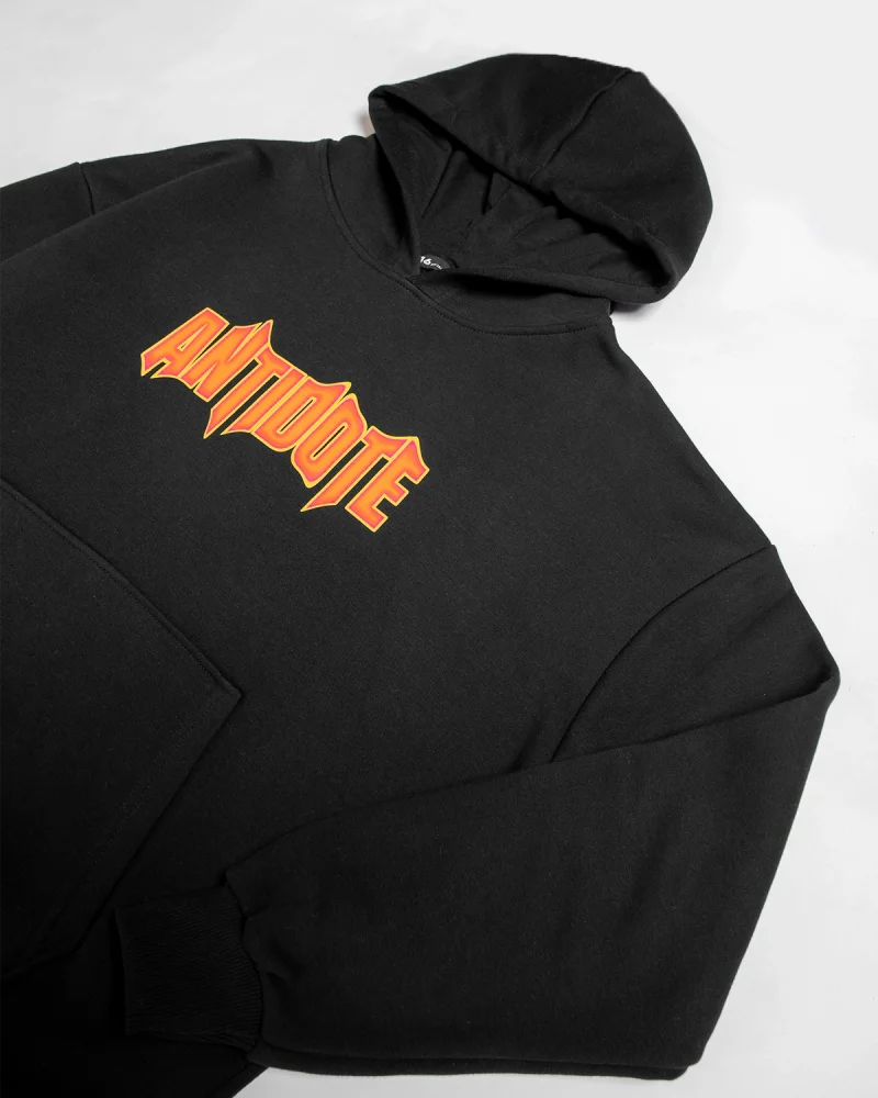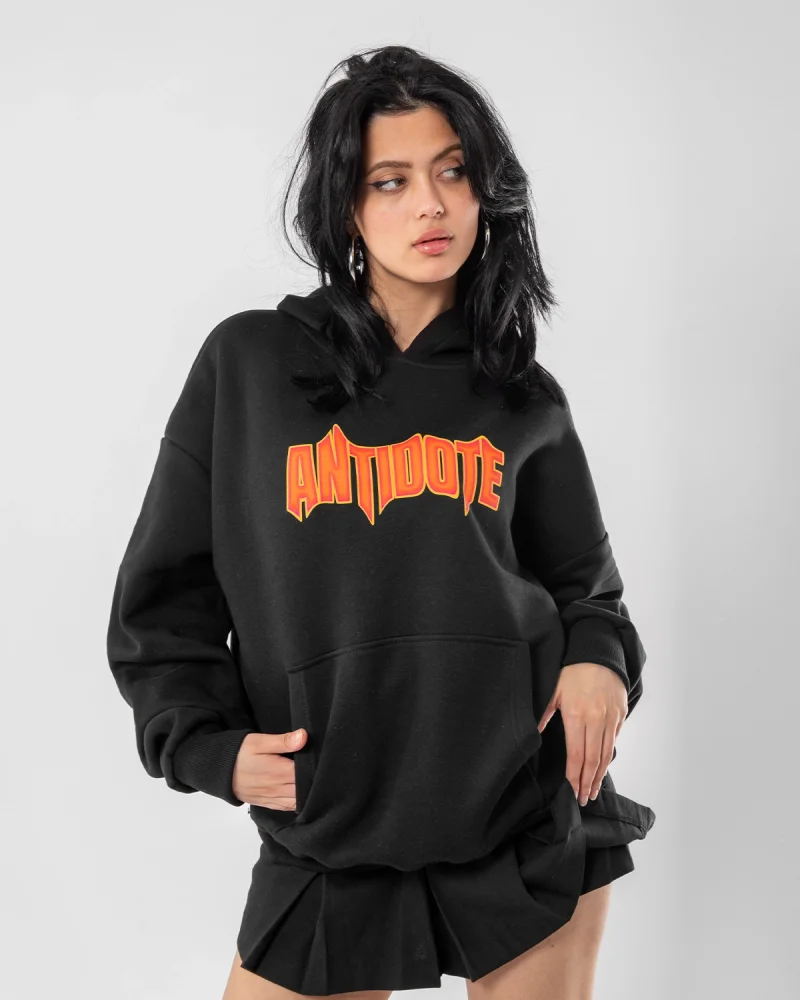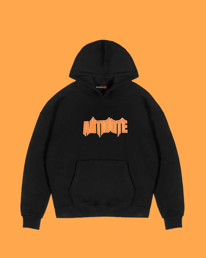 Antidote Baskılı Oversize Unisex Siyah Hoodie