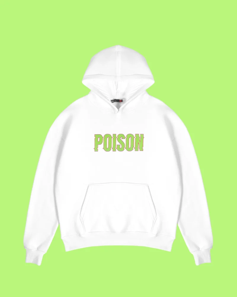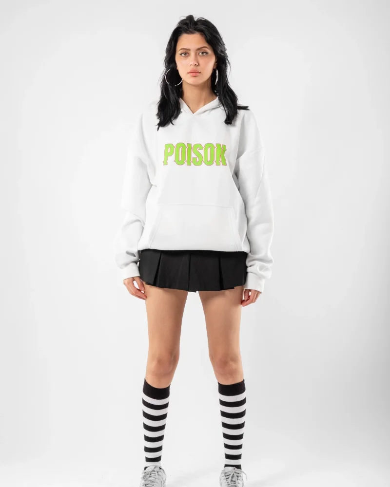 Poison Baskılı Oversize Unisex Beyaz Hoodie