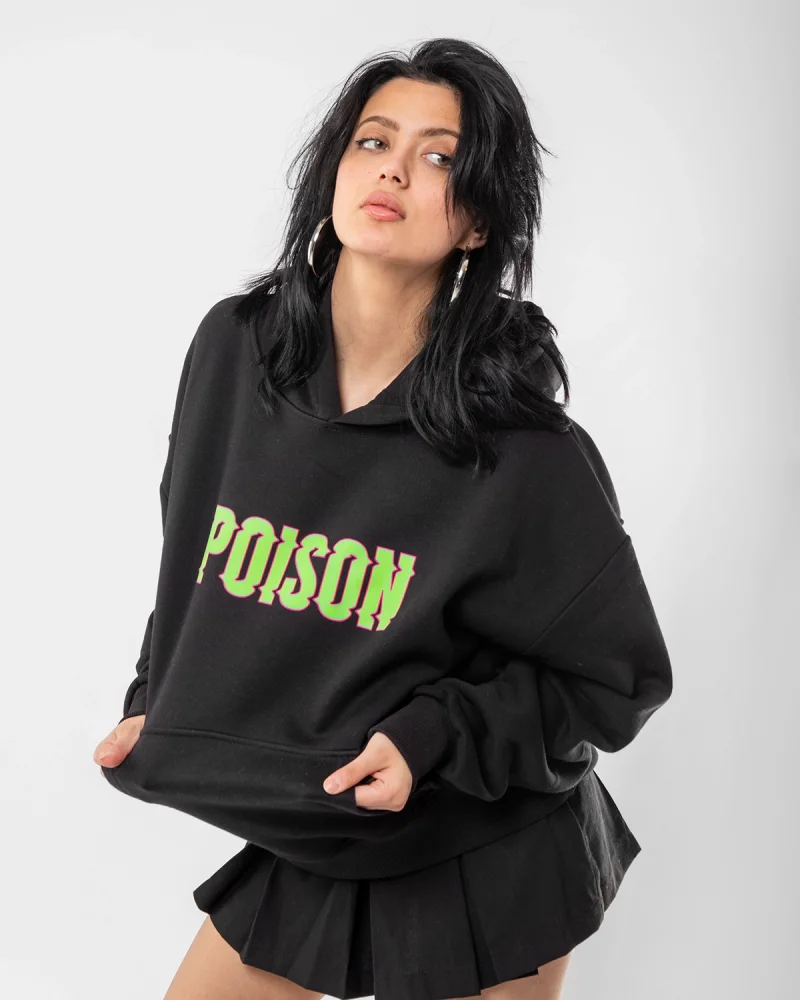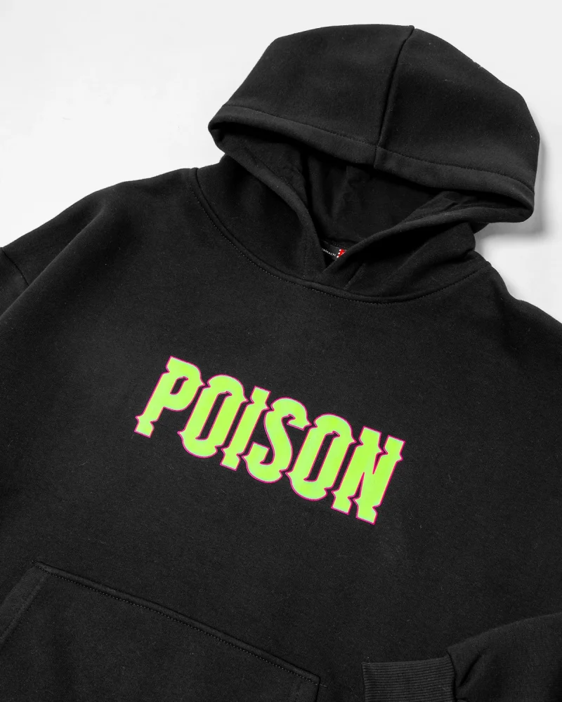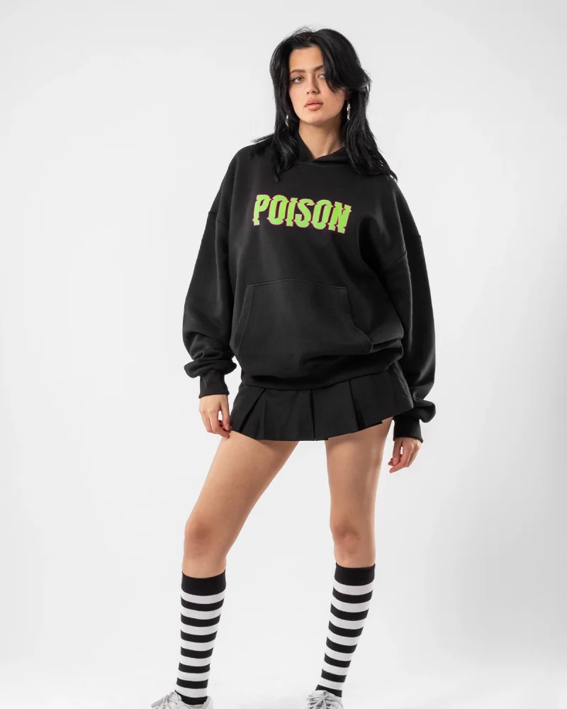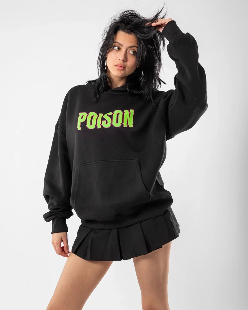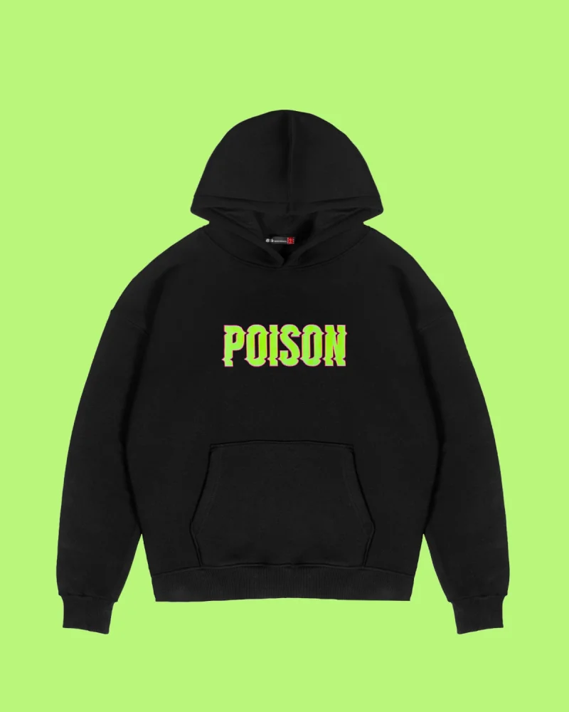Poison Baskılı Oversize Unisex Siyah Hoodie