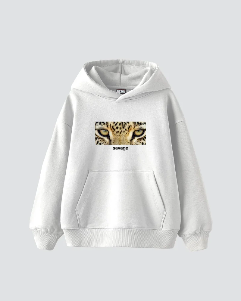 Savage Baskılı Oversize Unisex Premium Beyaz Hoodie