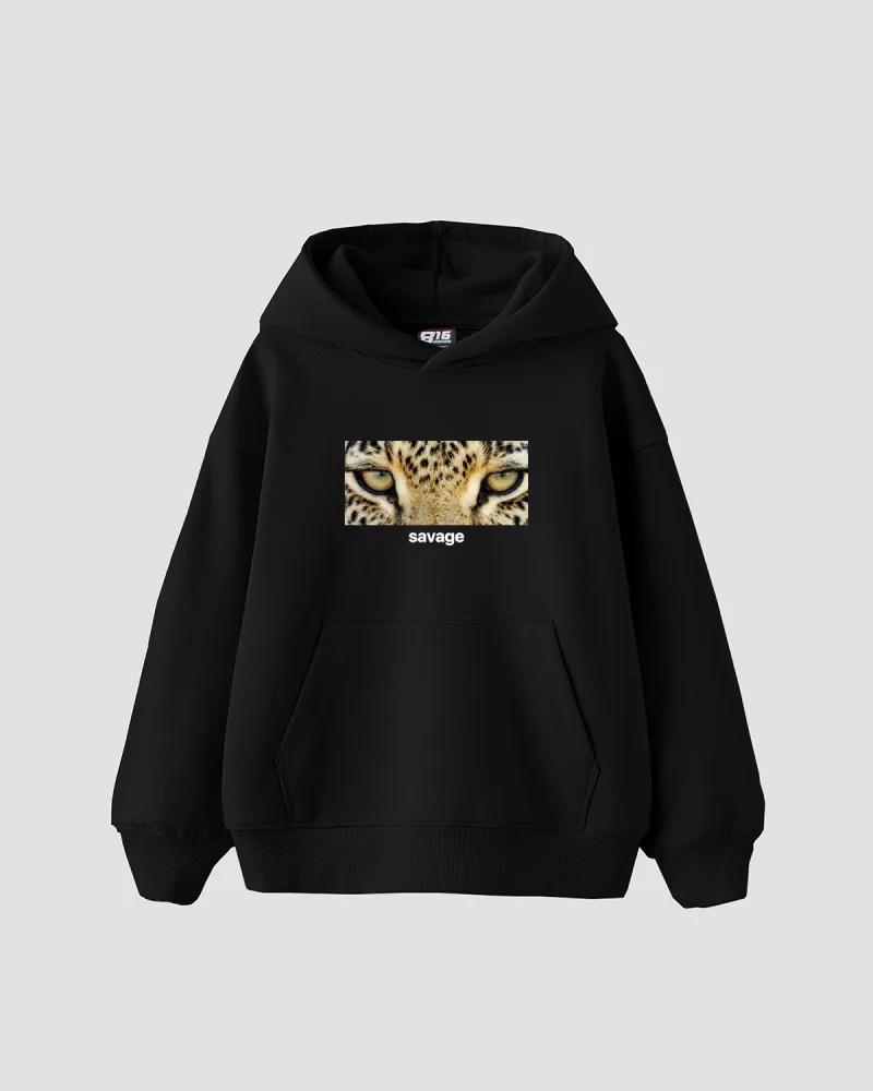Savage Baskılı Oversize Unisex Premium Siyah Hoodie