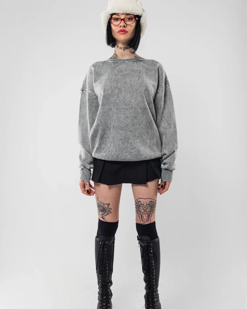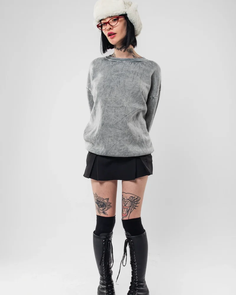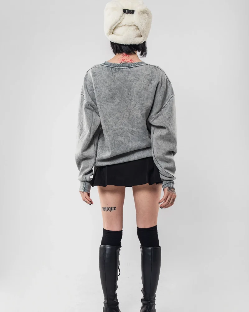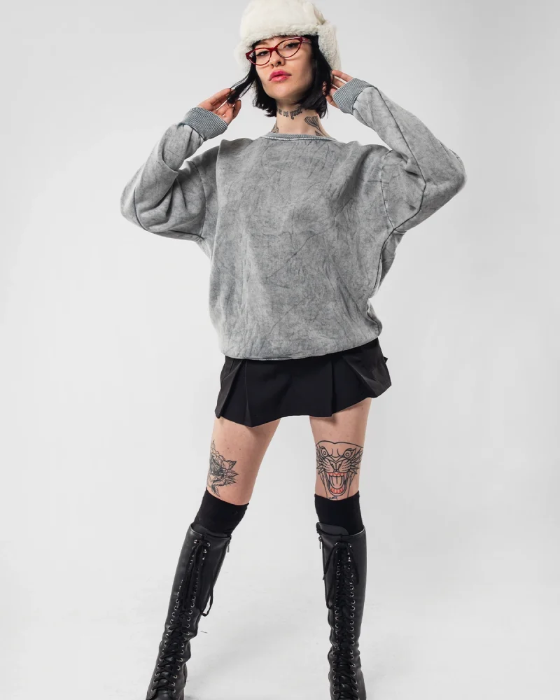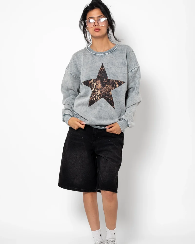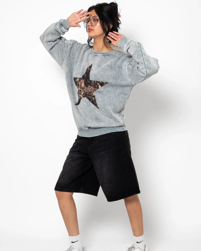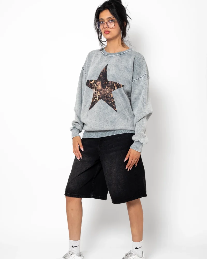 Starz Leopar Baskılı Yıkamalı Beyaz Oversize Unisex Sweatshirt