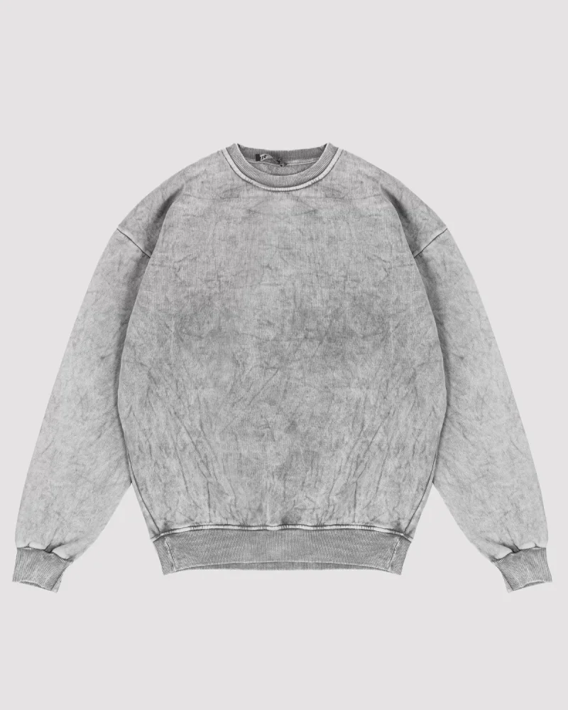 Yıkamalı Kapüşonsuz Basic Oversize Unisex Beyaz Sweatshirt