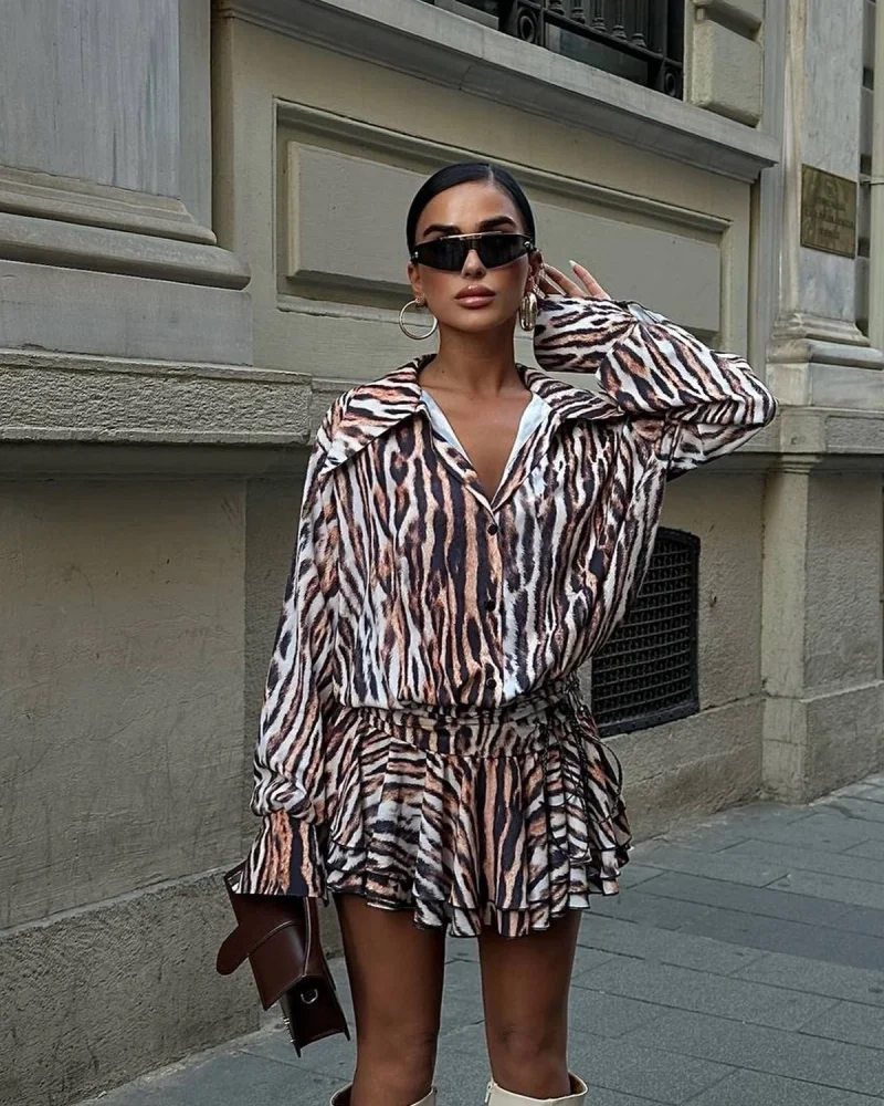 Pileli Siyah Kemer Detaylı Jessica Kumaş Gömlek Elbise