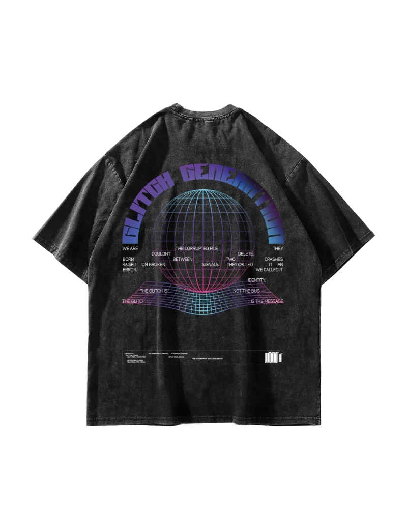 Glitch Baskılı Oversize Unisex Yıkamalı Siyah Tshirt