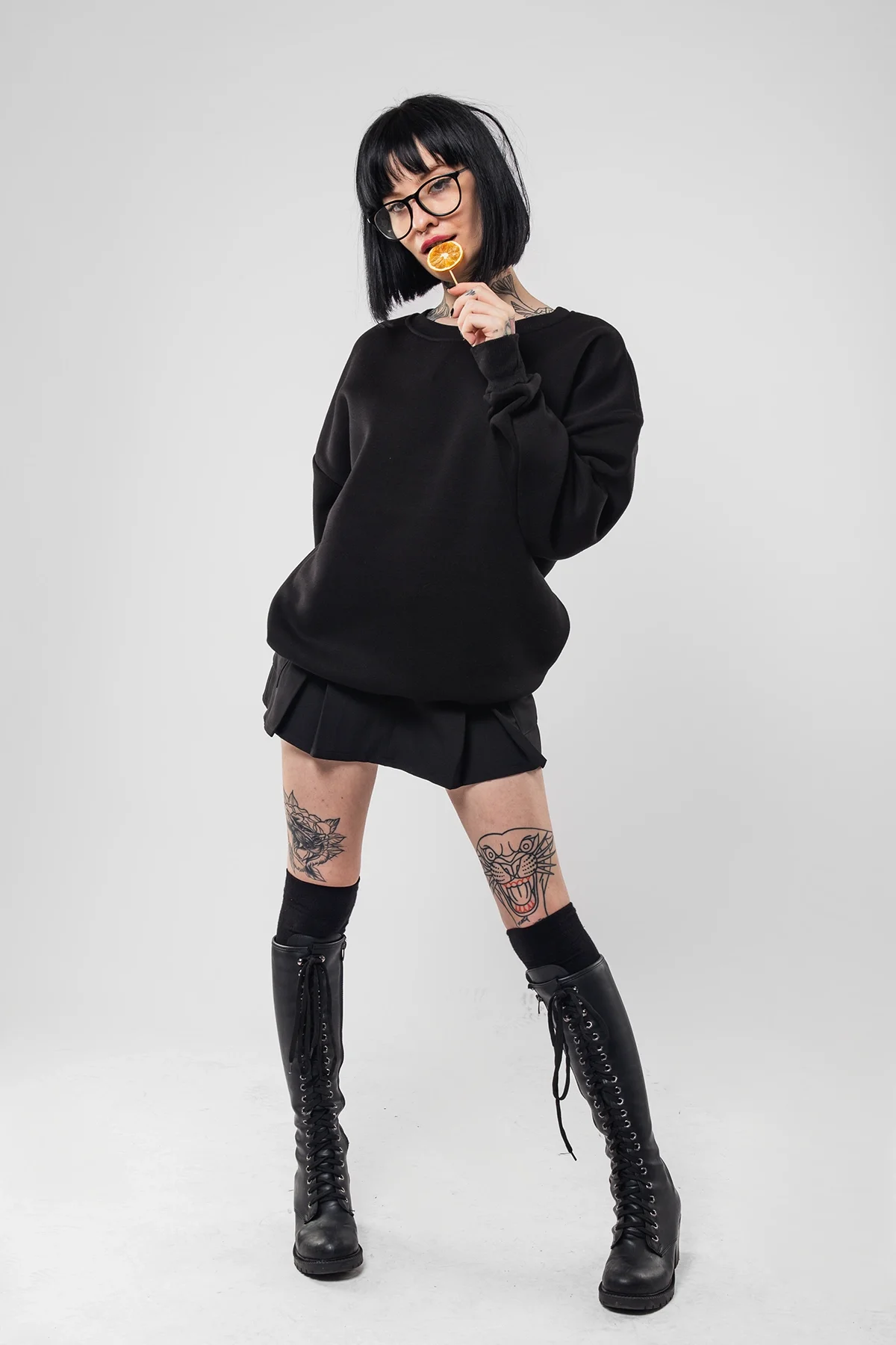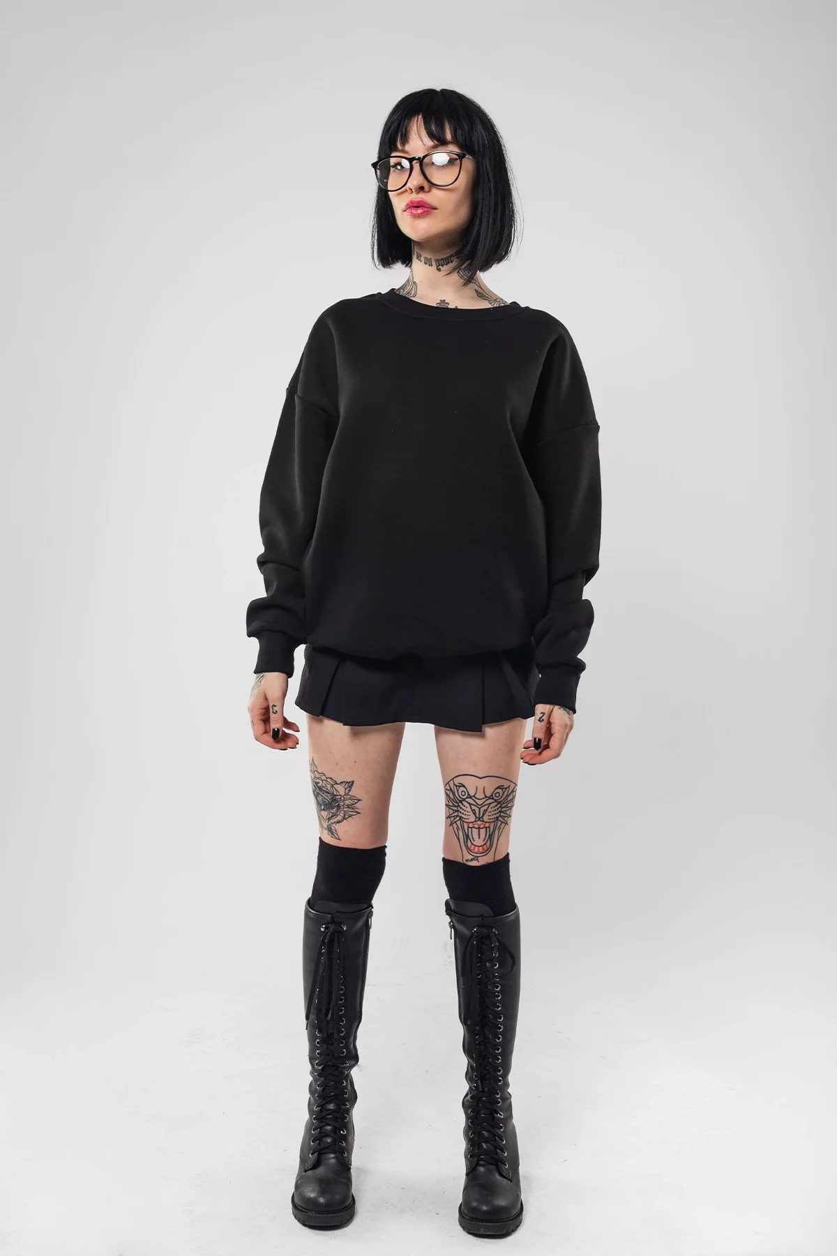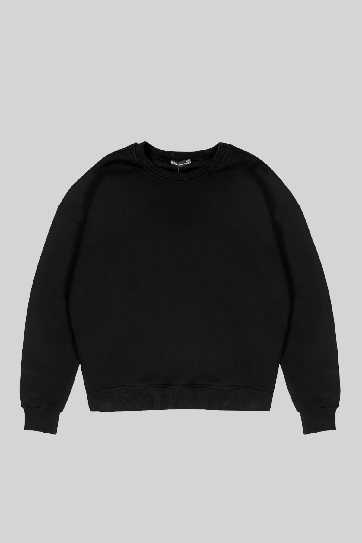 KAPÜŞONSUZ BASİC OVERSİZE UNİSEX SİYAH SWEATSHİRT