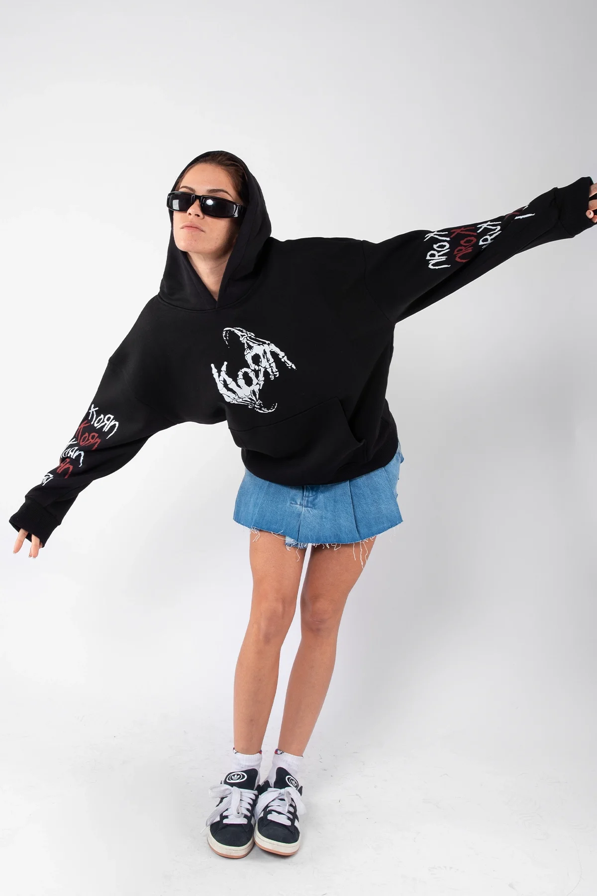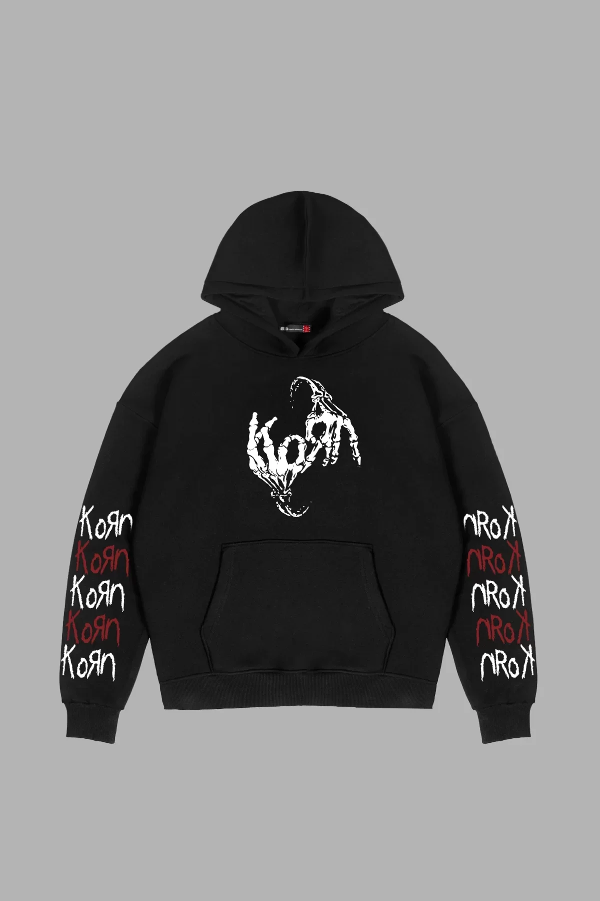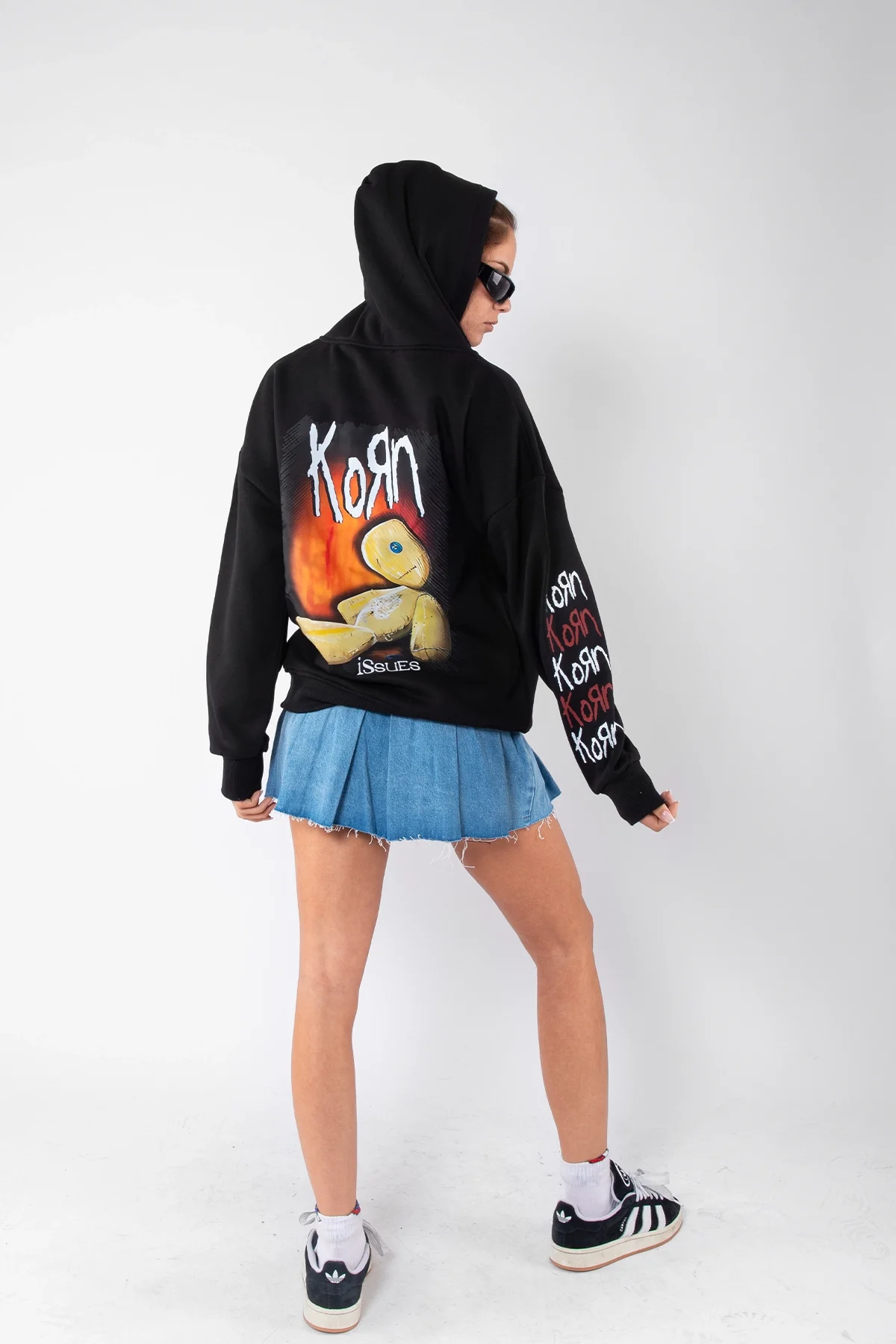 KORN BASKILI OVERSİZE UNİSEX SİYAH HOODİE
