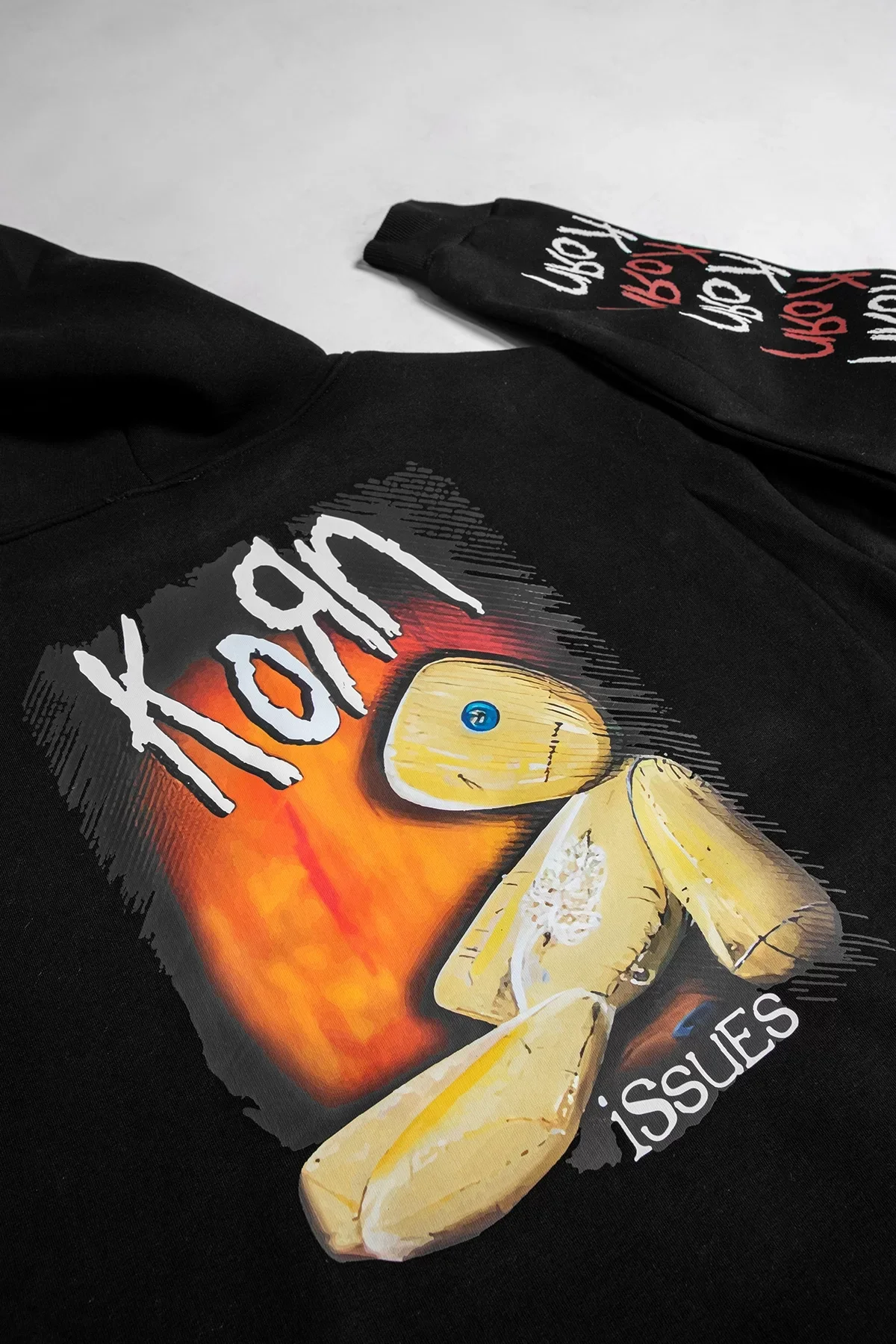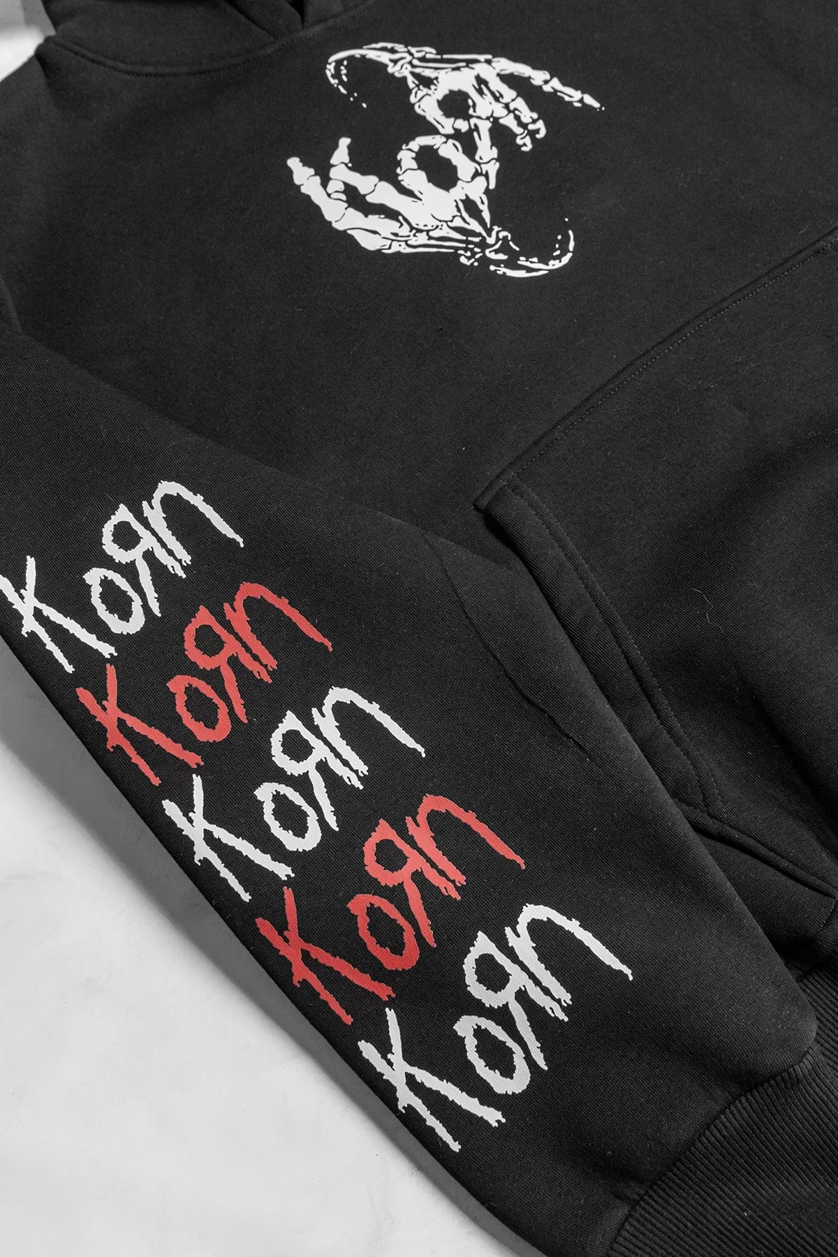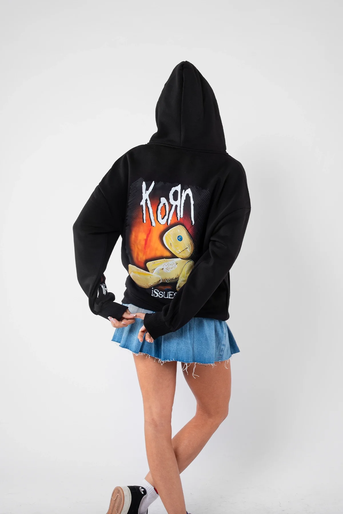 KORN BASKILI OVERSİZE UNİSEX SİYAH HOODİE