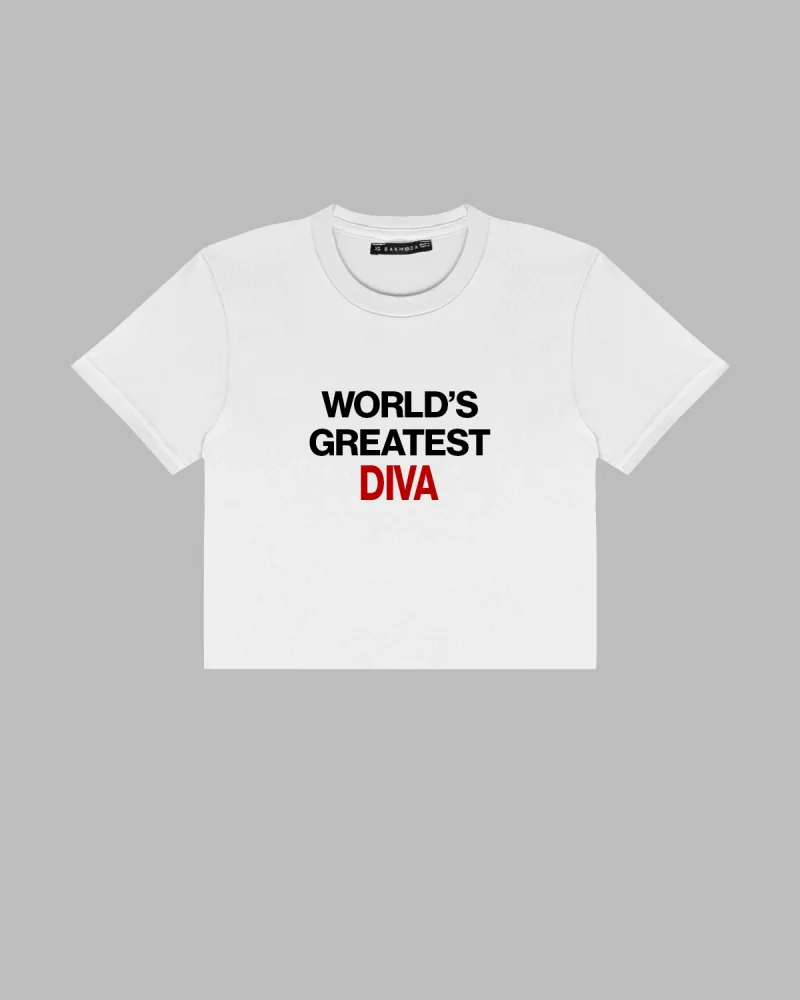 Worlds Greatest Dıva Baskılı Beyaz Crop Top