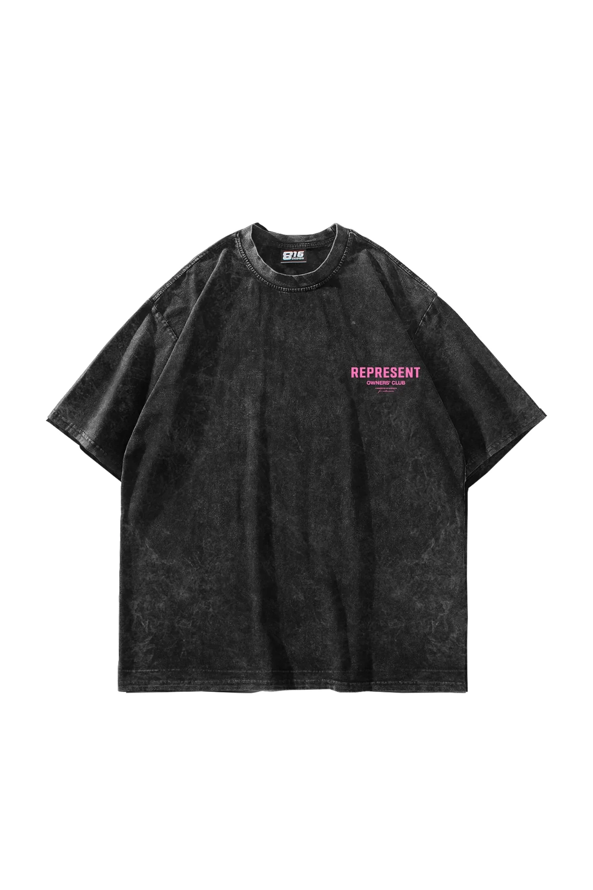 RPRSNT BASKILI OVERSİZE UNİSEX YIKAMALI SİYAH TSHİRT