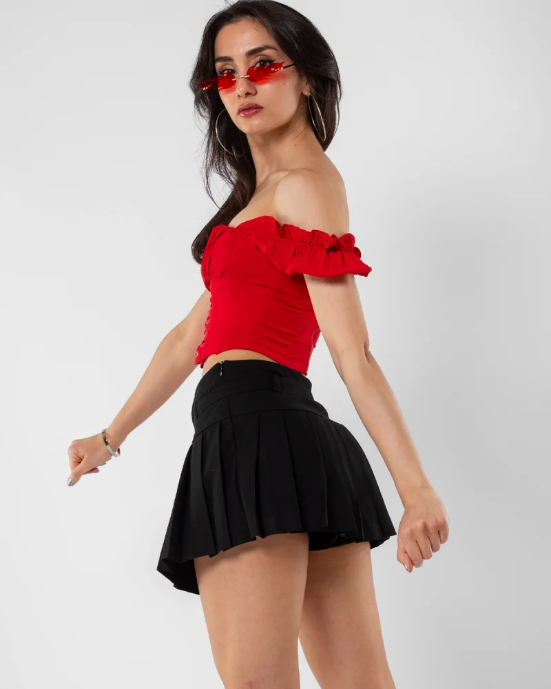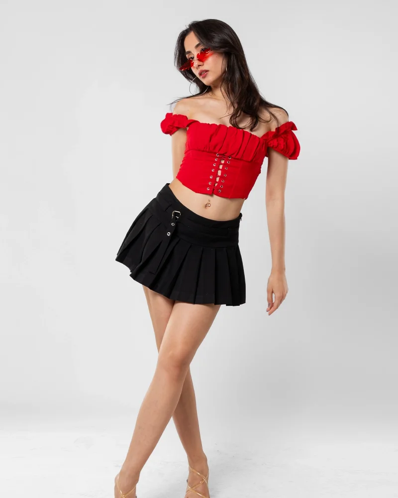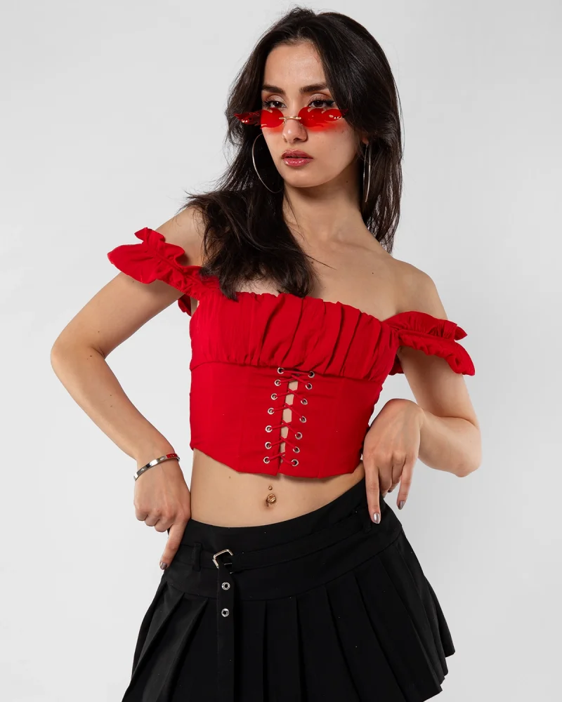 Dantel Detaylı Agraflı Askılı Kırmızı Korse