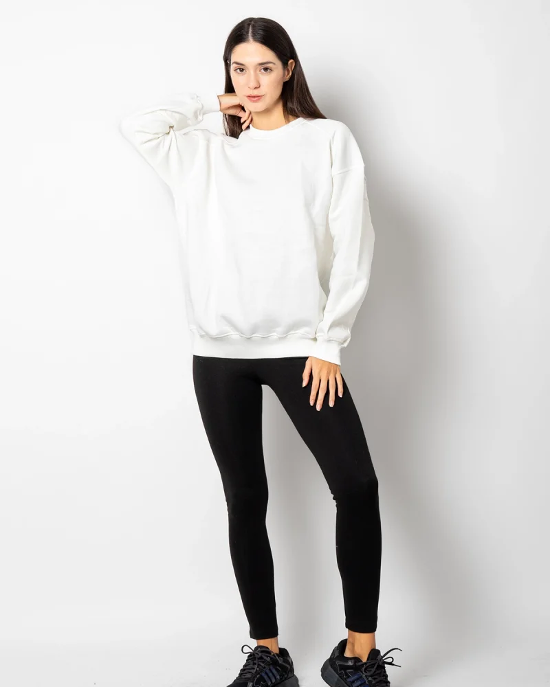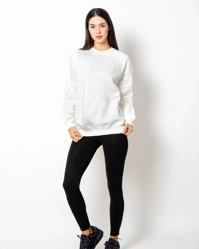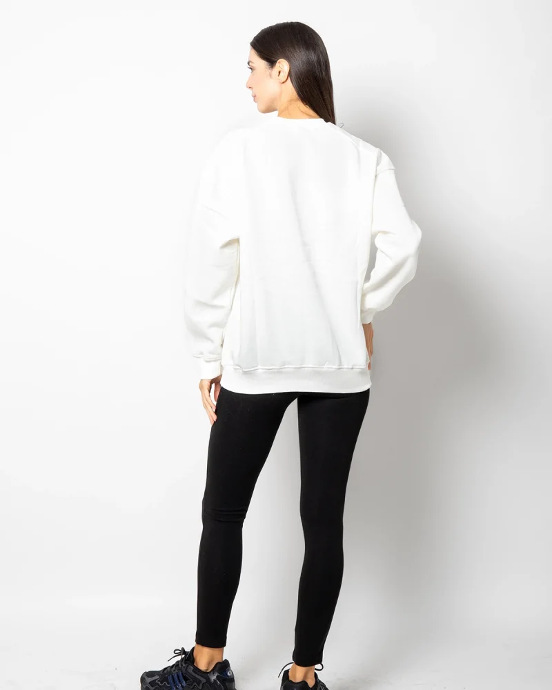 Basic Dikiş Detaylı Beyaz Sweatshirt