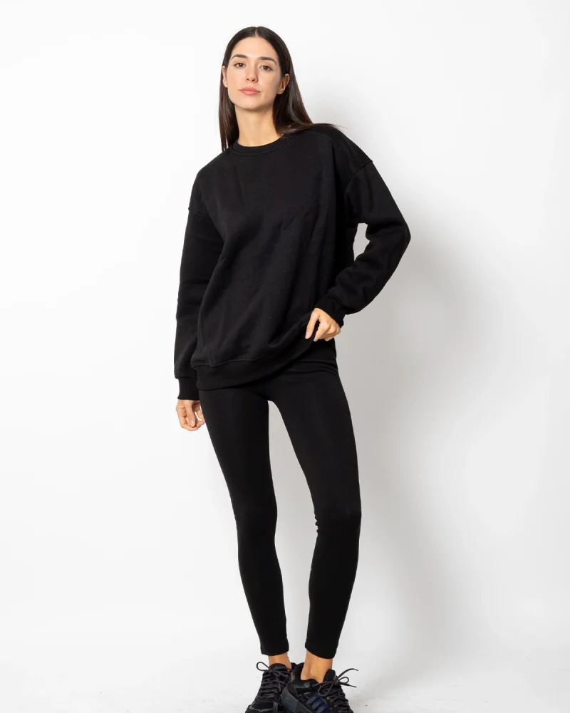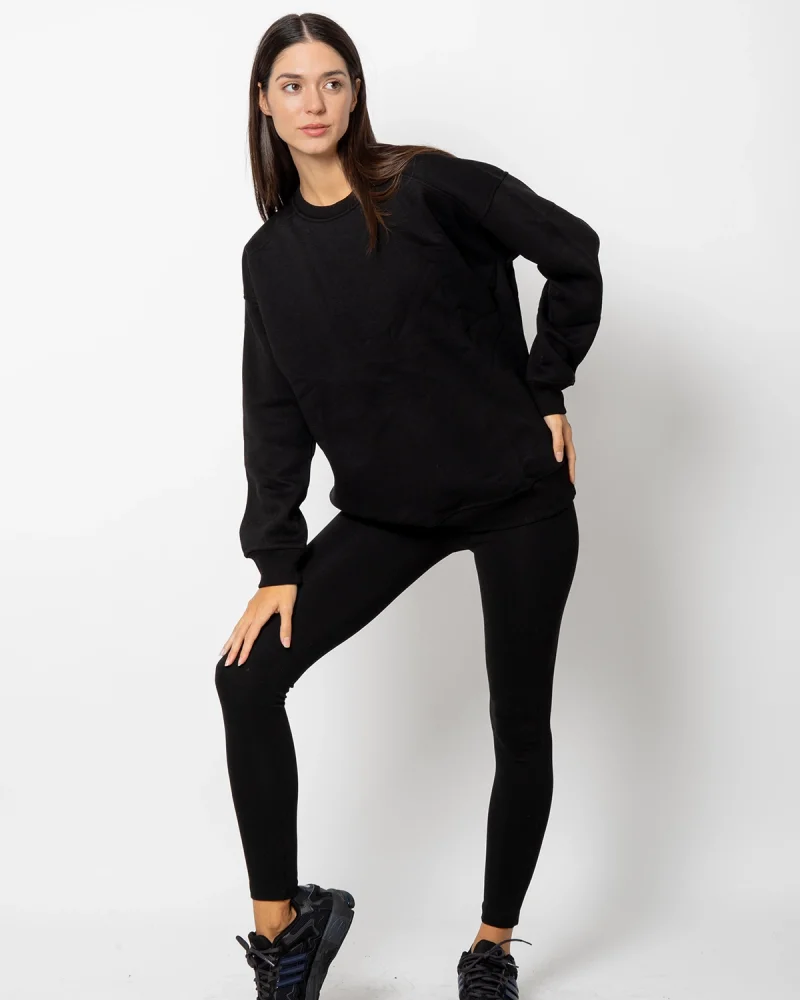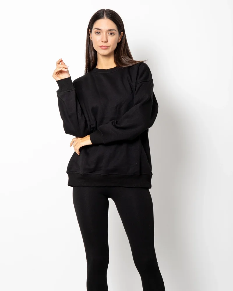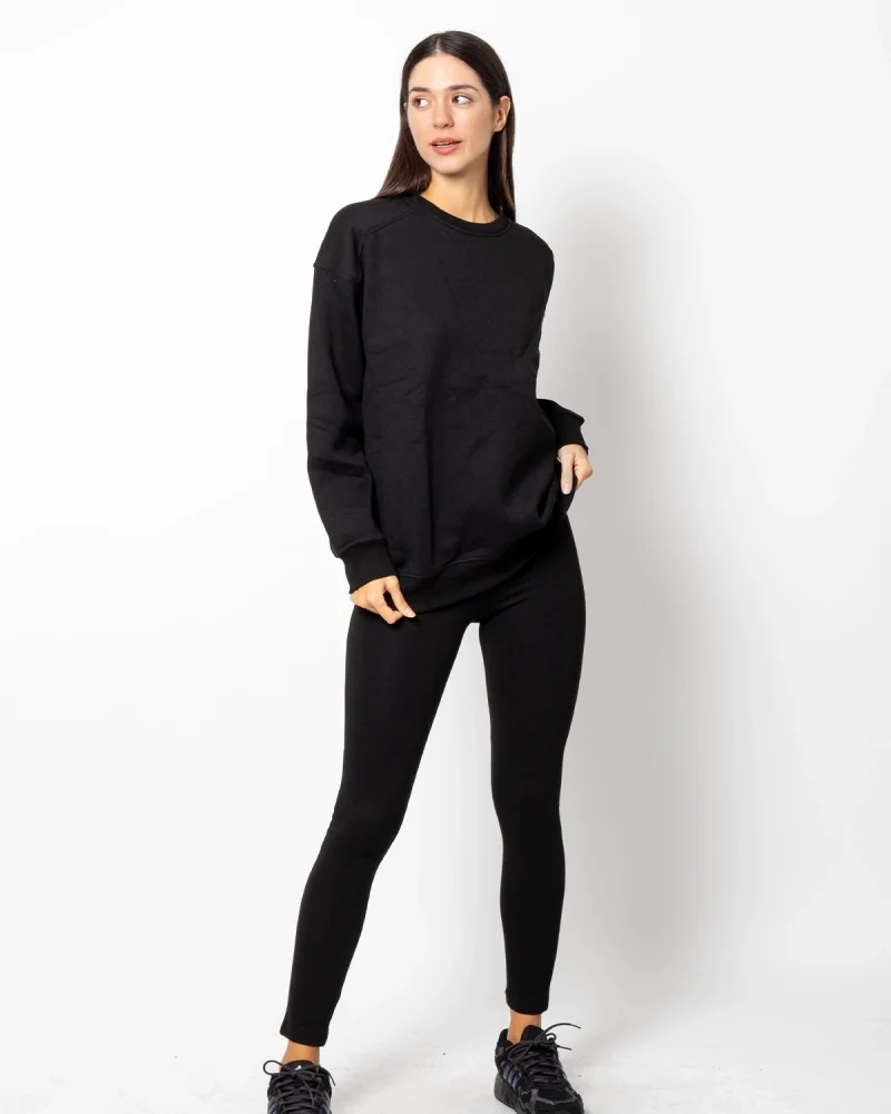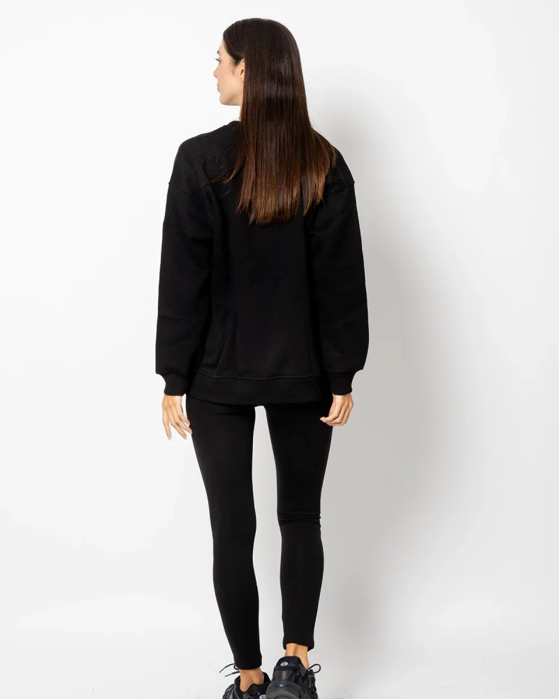 Basic Dikiş Detaylı Siyah Sweatshirt