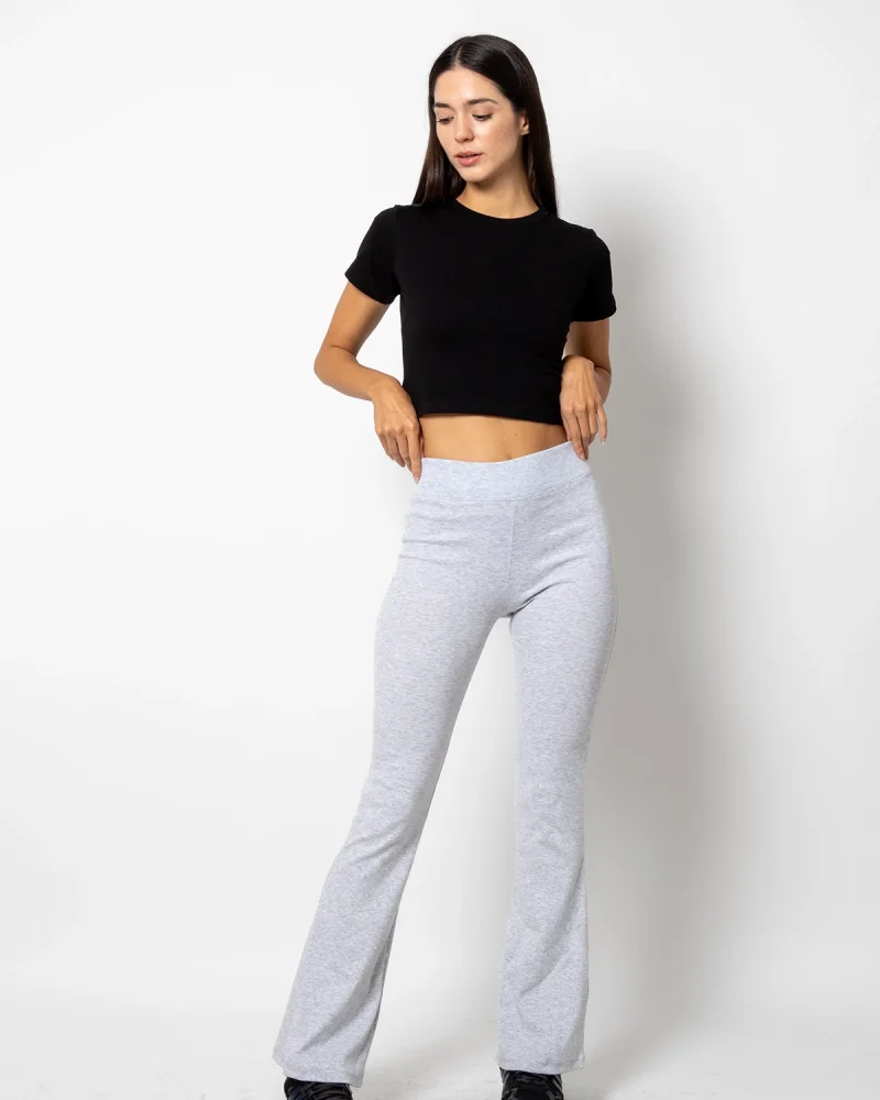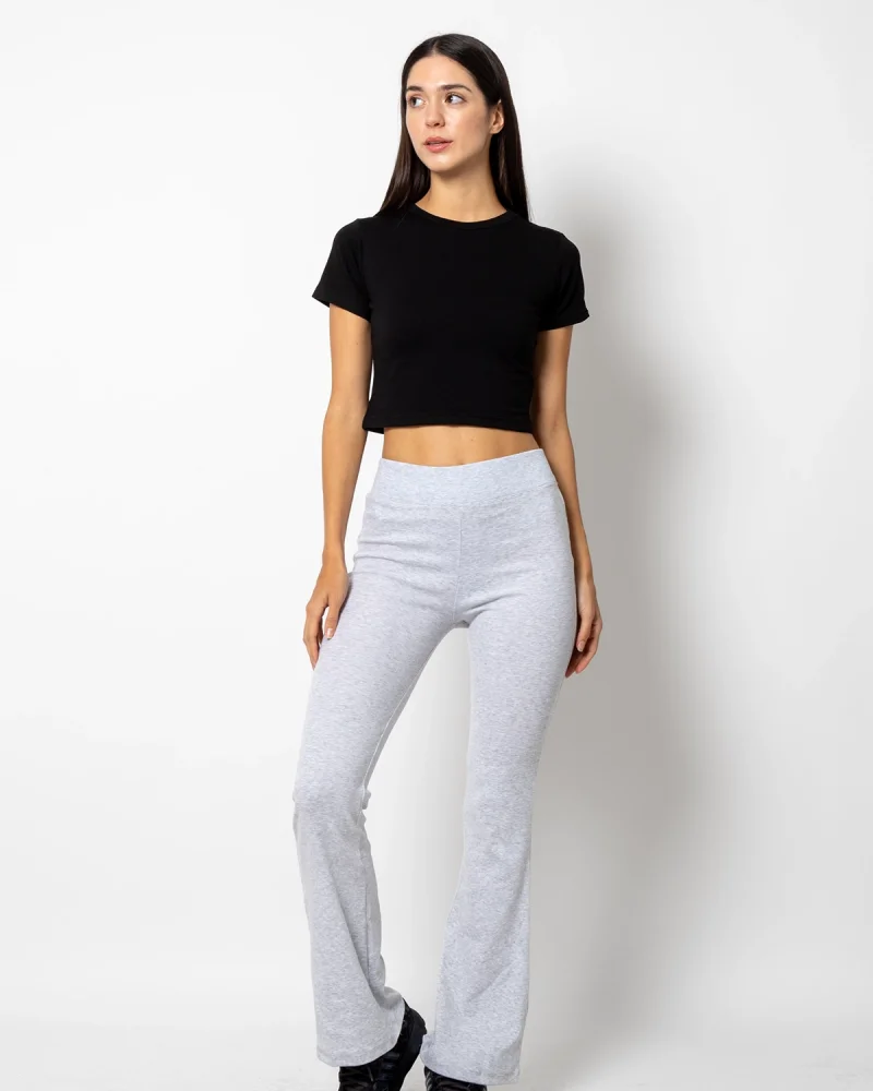 İspanyol Paça Bel Detaylı Gri Eşofman