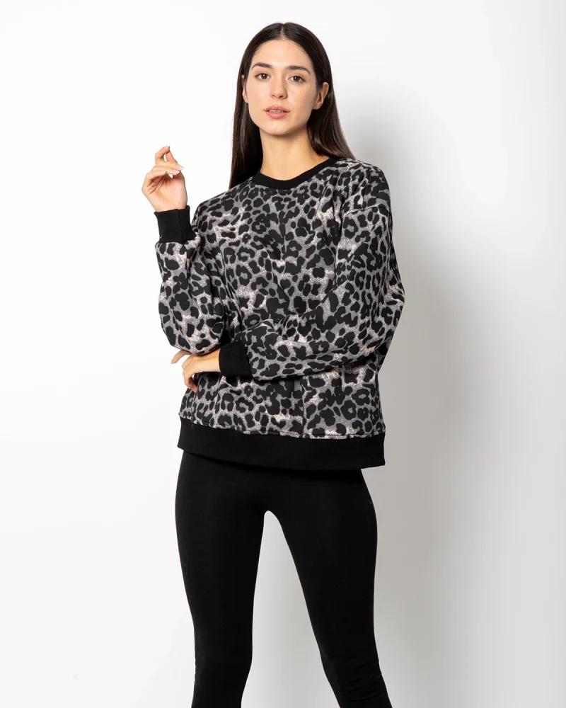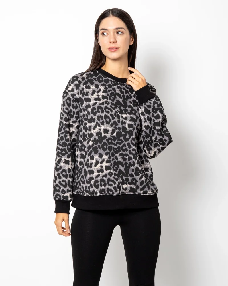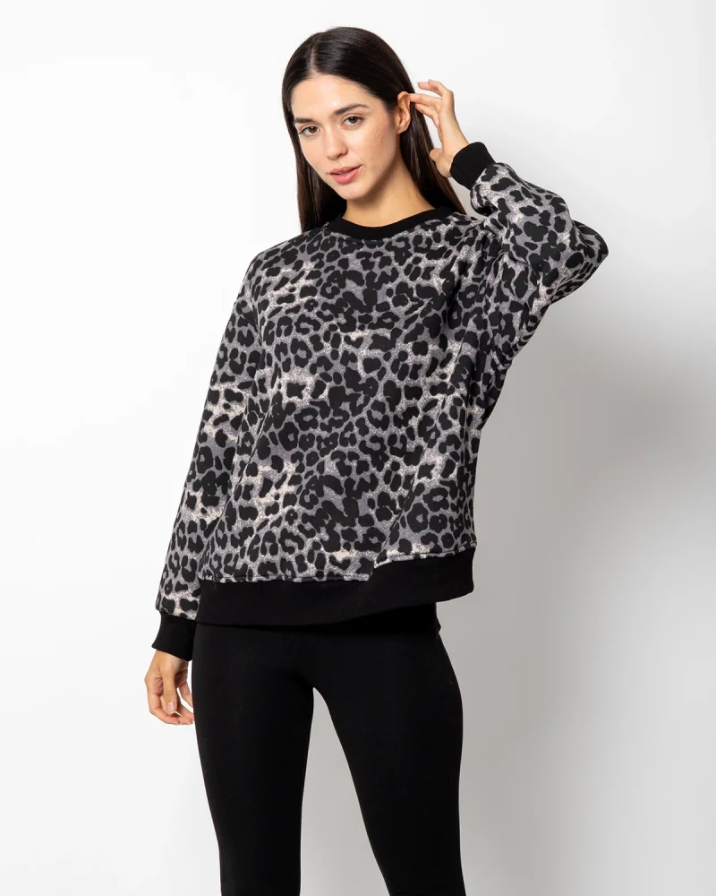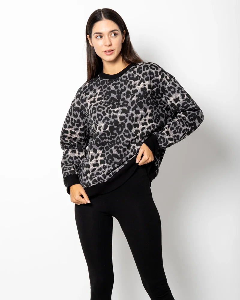 Leopar Falling Star Baskılı Oversize Unisex Premium Siyah Hoodie