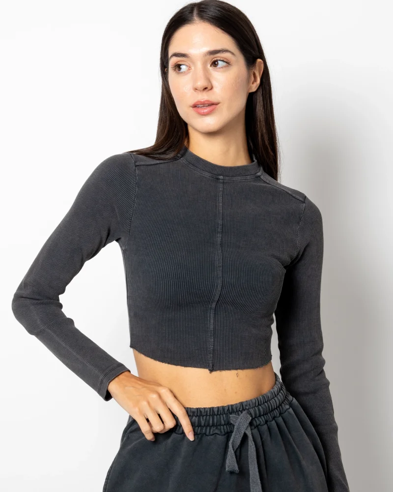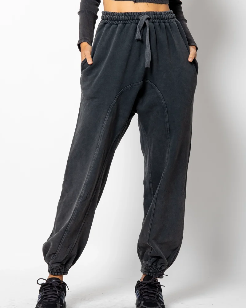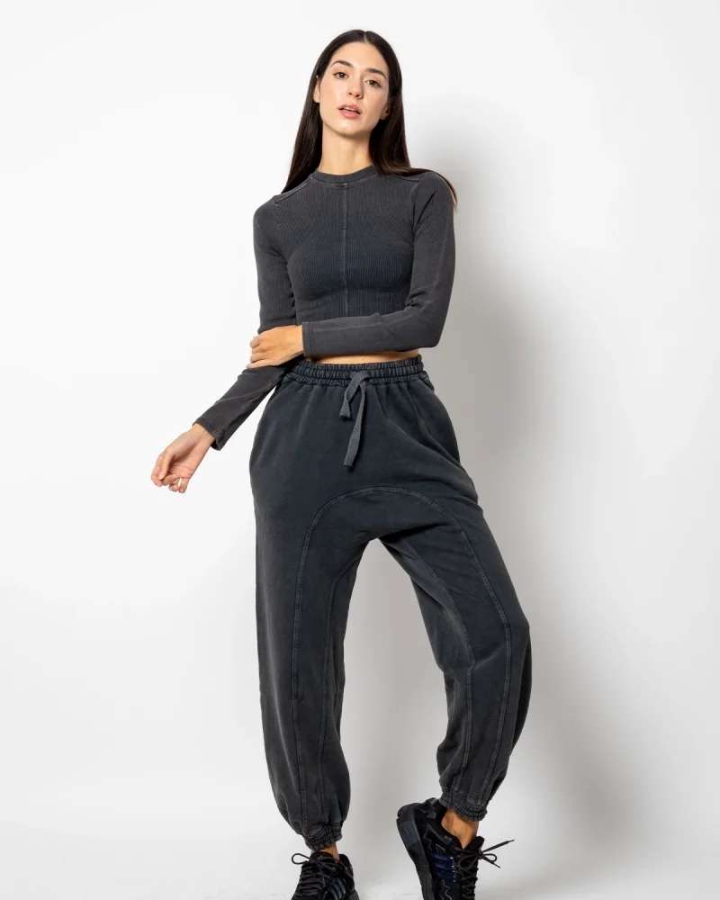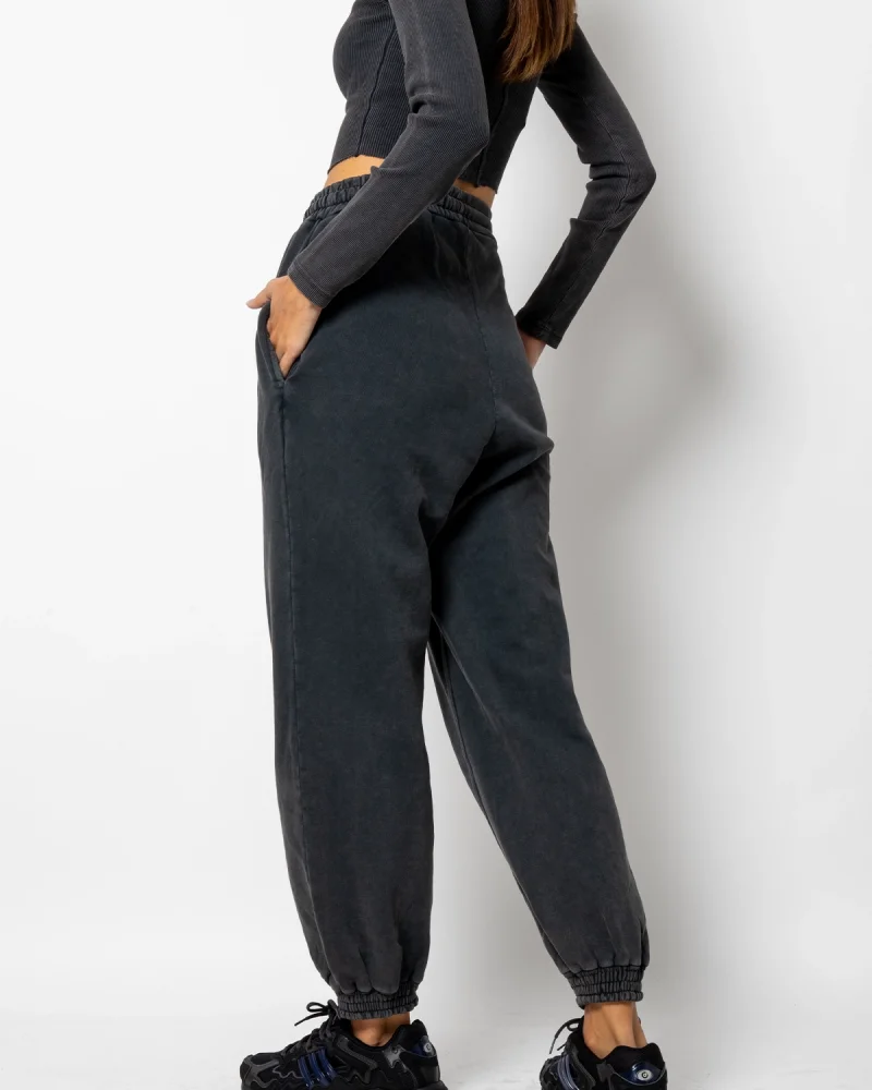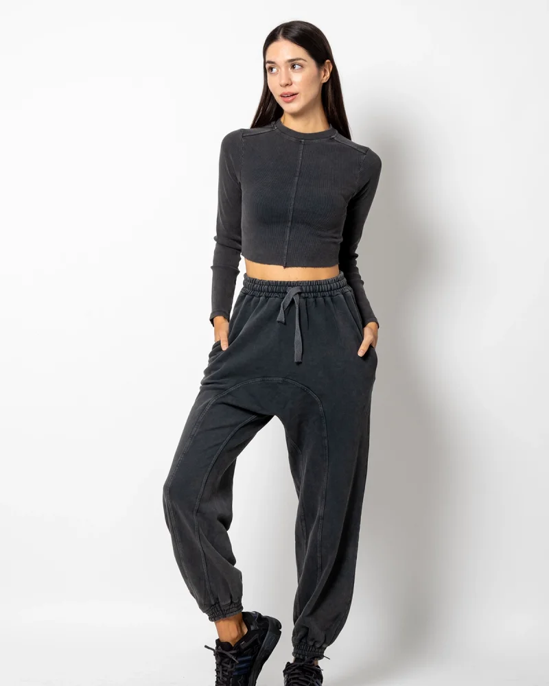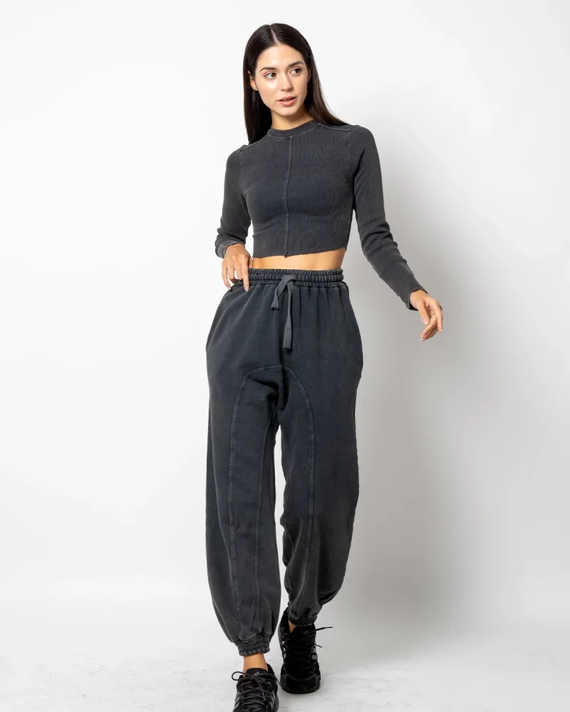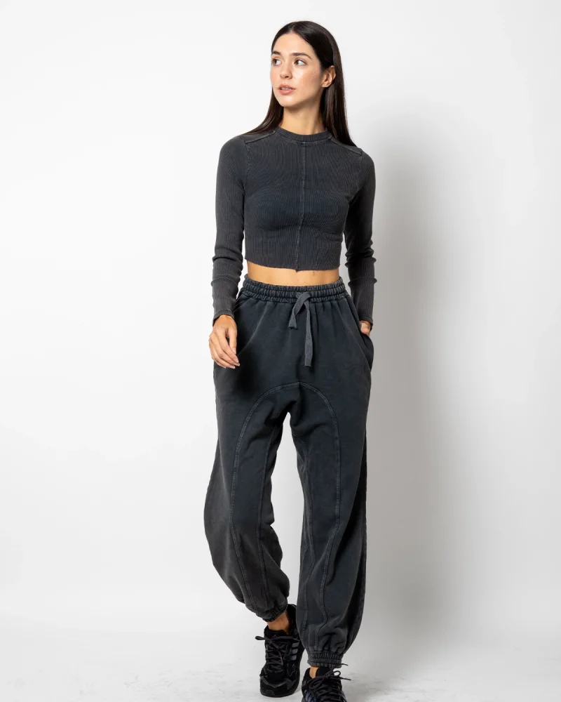 Yıkamalı Dikiş Detaylı Füme Eşofman Crop Takım
