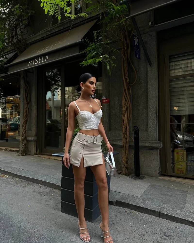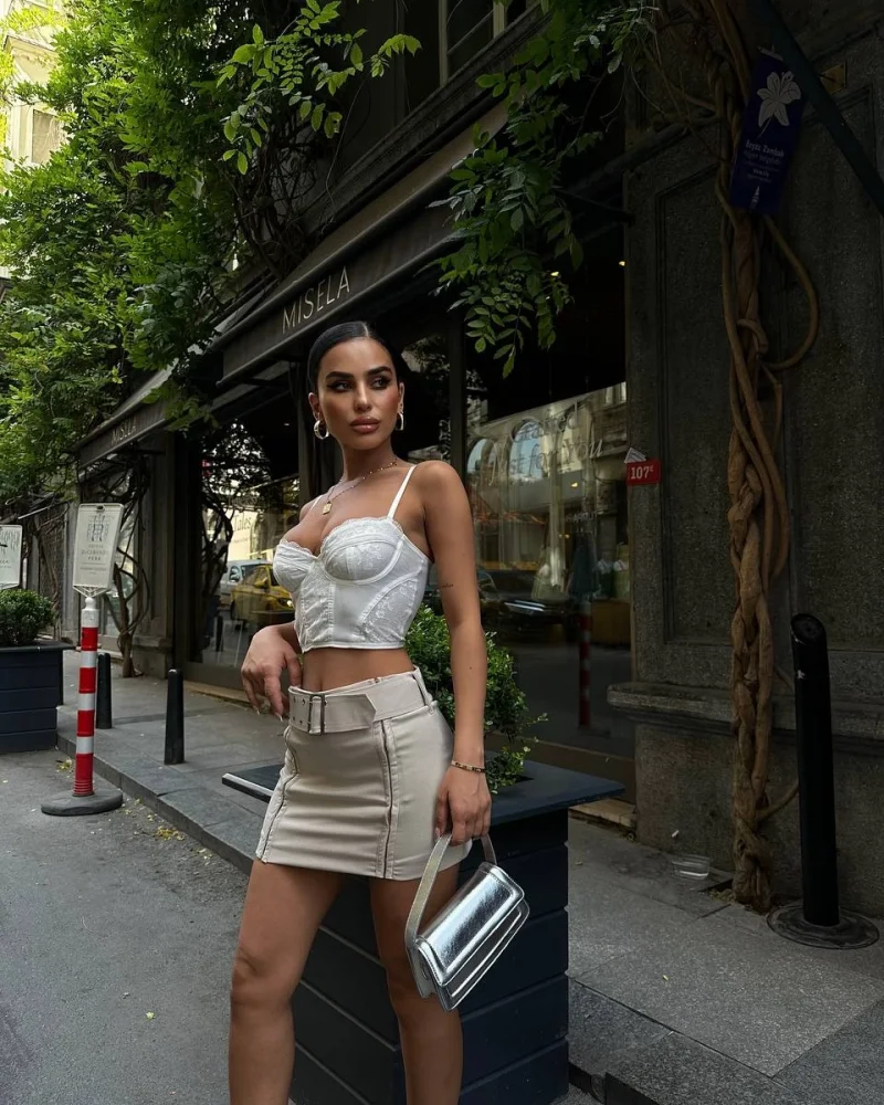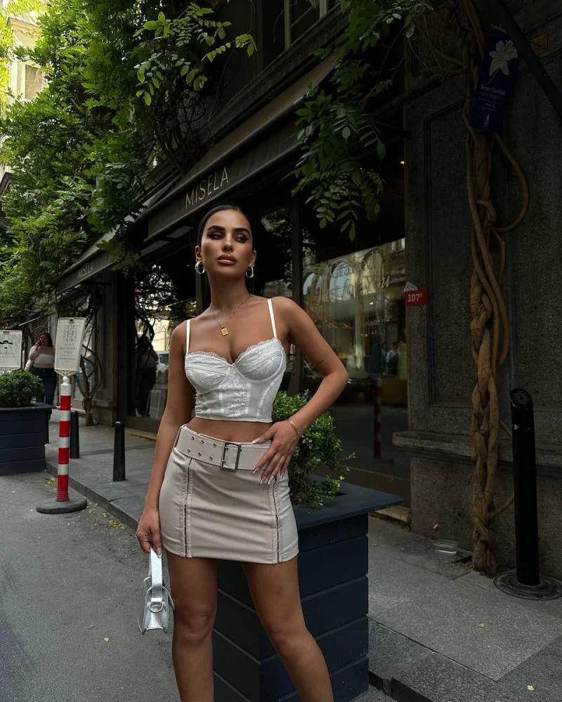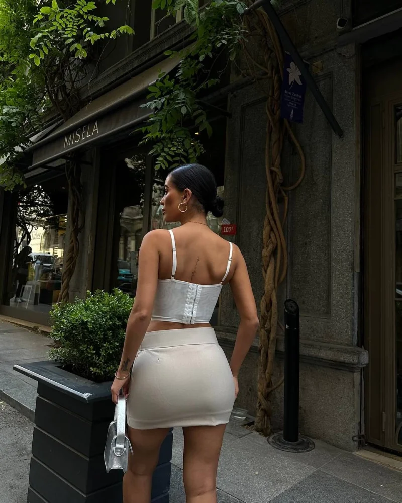 Degaje Yaka İp Askılı Sırt Dekolteli Beyaz Mini Elbise