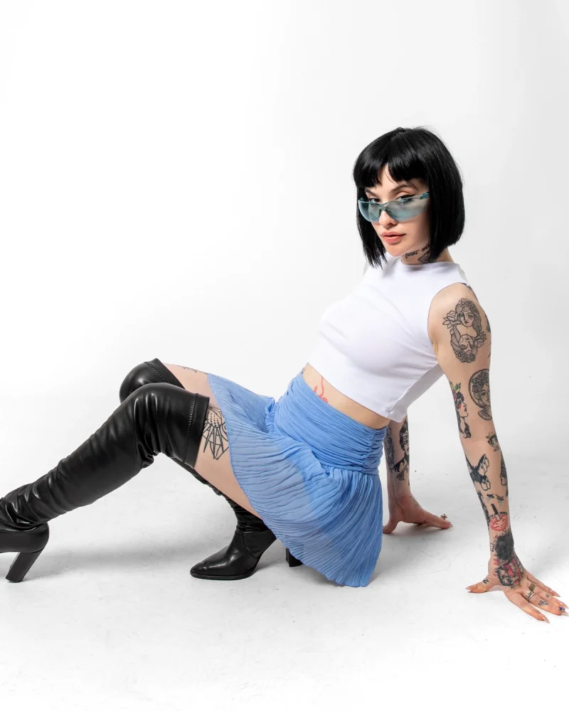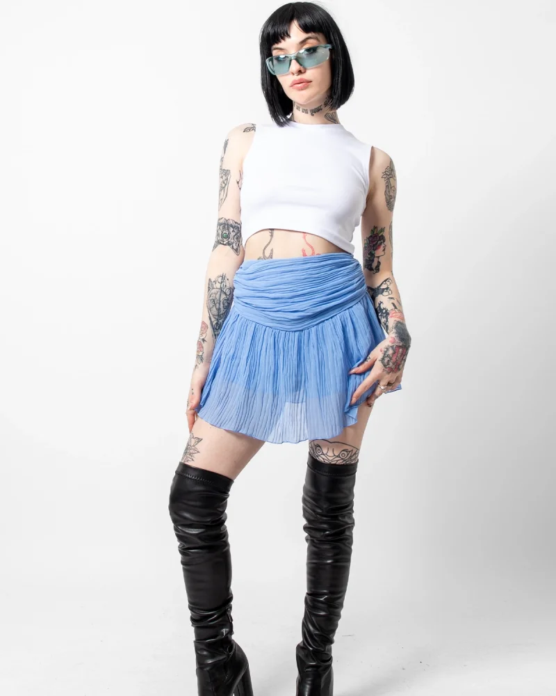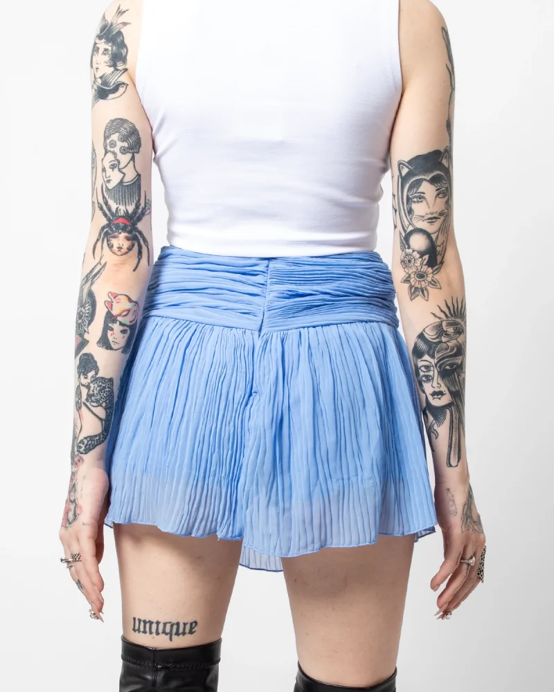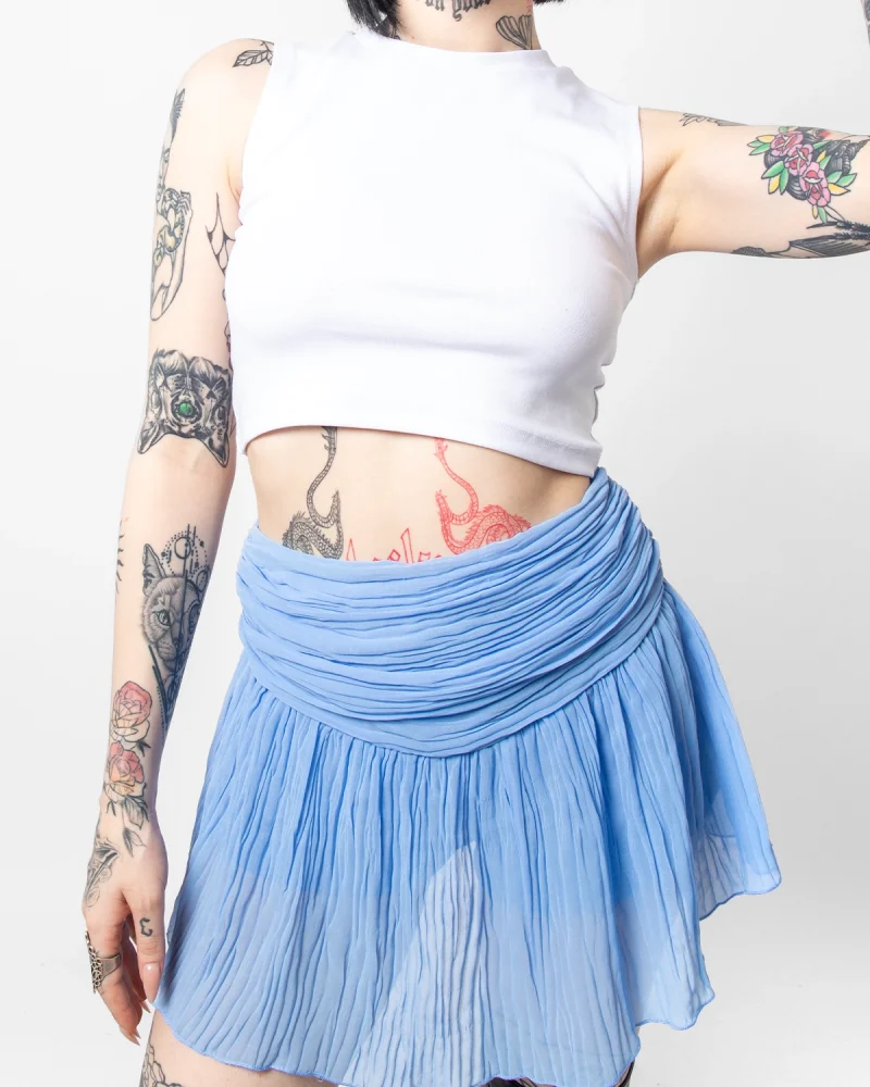 Piliseli Şifon Basic Mavi Etek