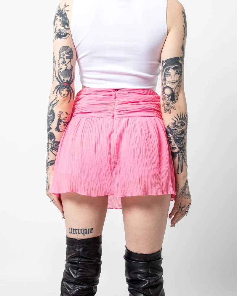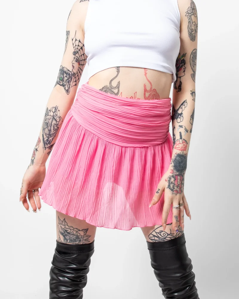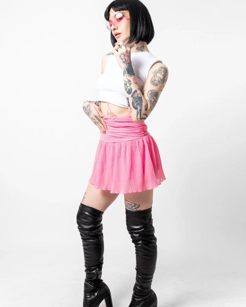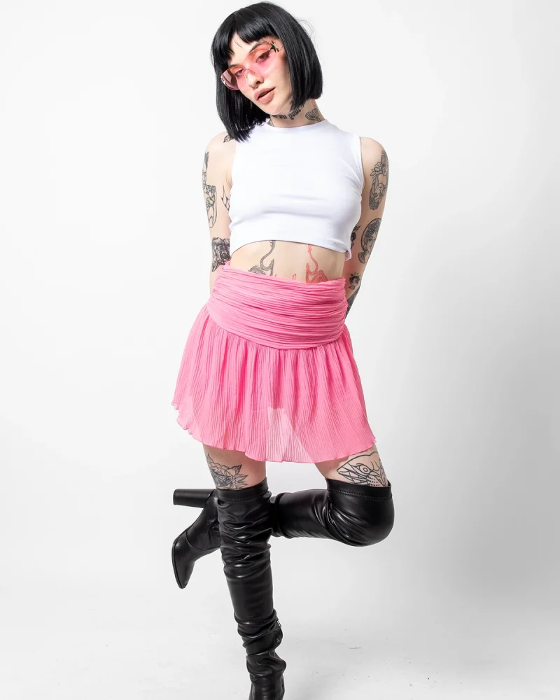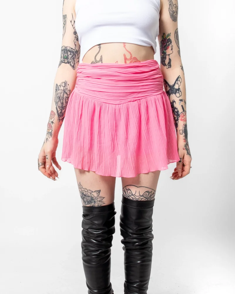 Piliseli Şifon Basic Pembe Etek