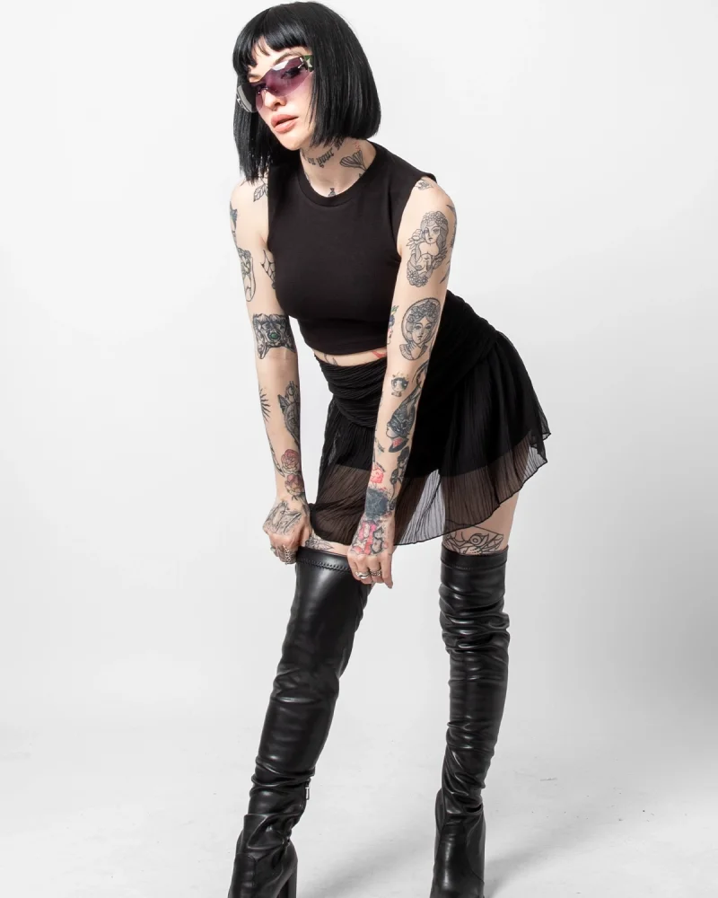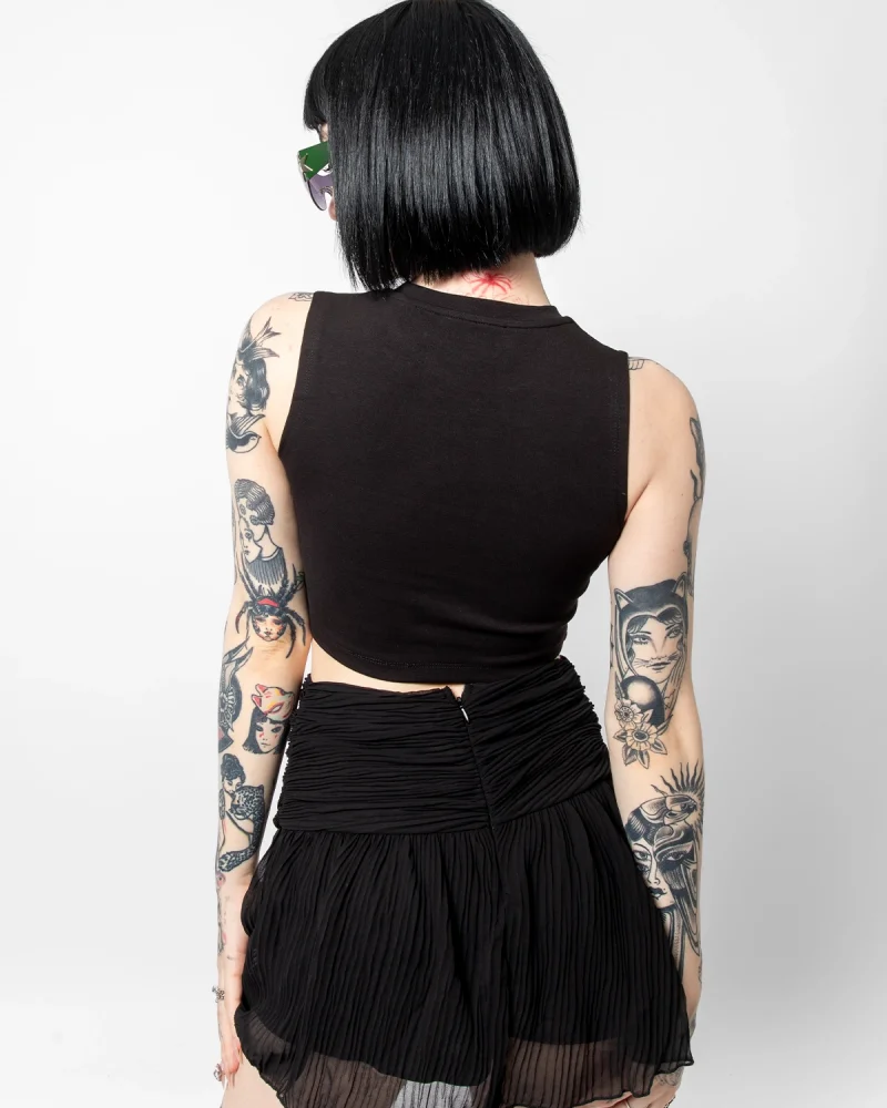 Yan Büzgülü İp Detaylı Siyah Crop