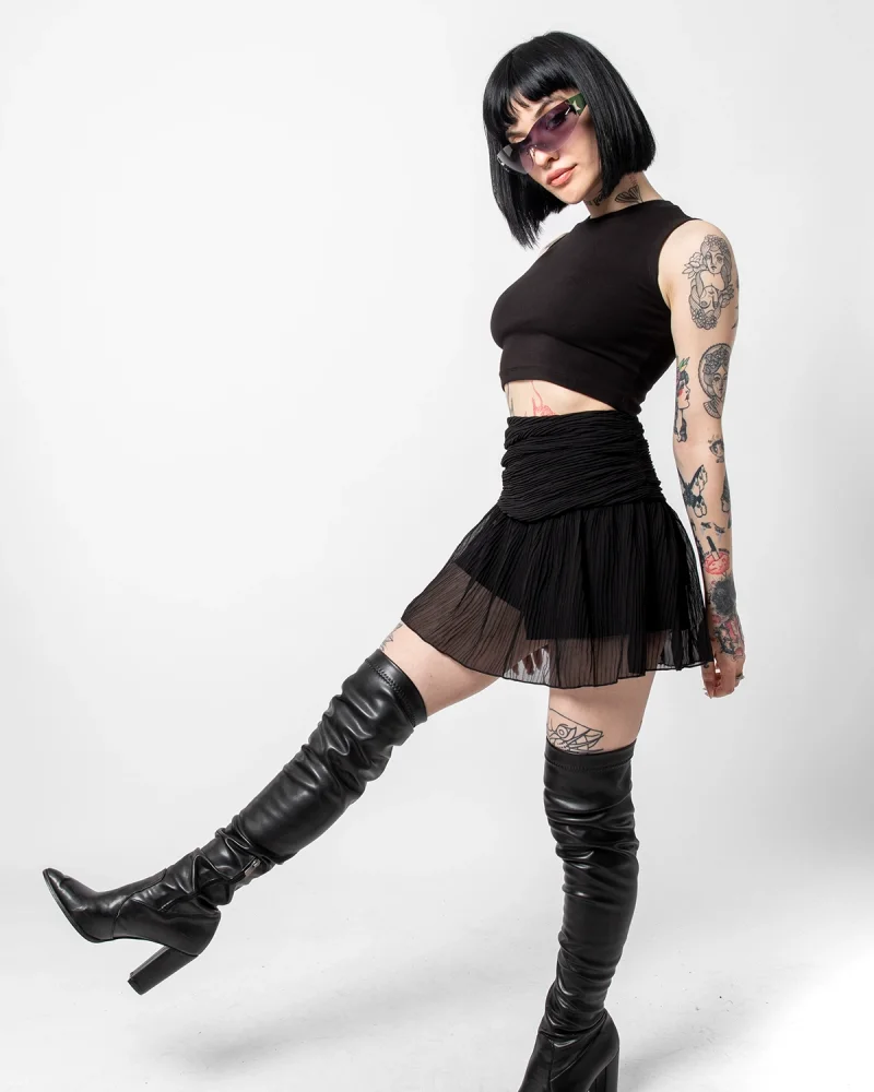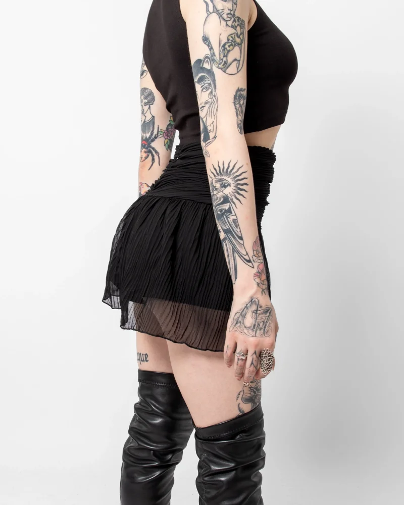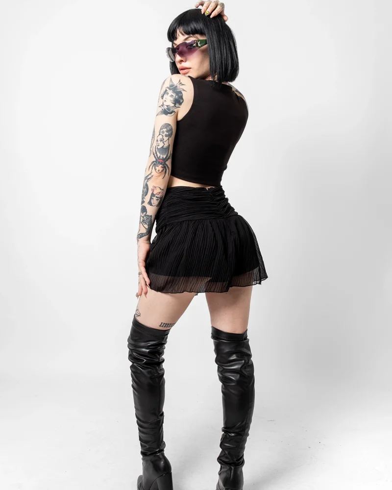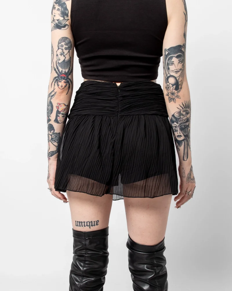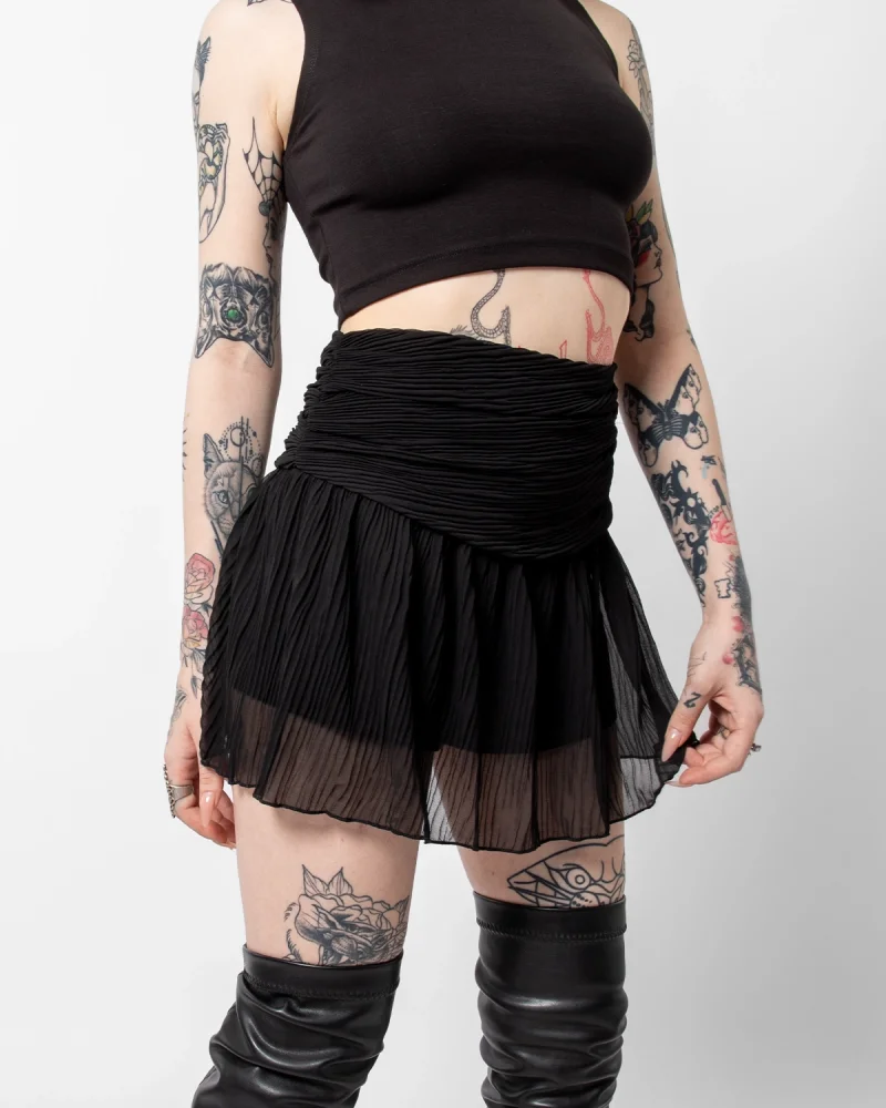 Piliseli Şifon Basic Siyah Etek
