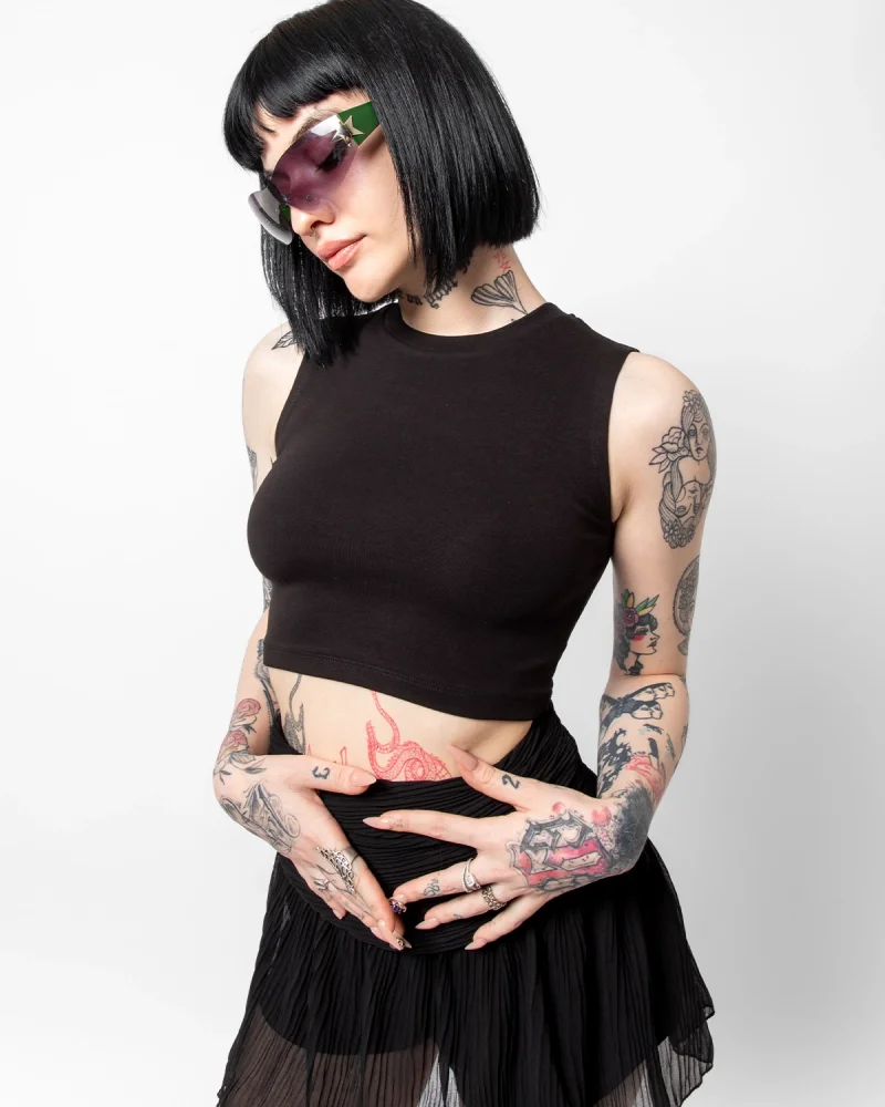 Sıfır Kol Dikiş Detaylı Siyah Basic Atlet Crop
