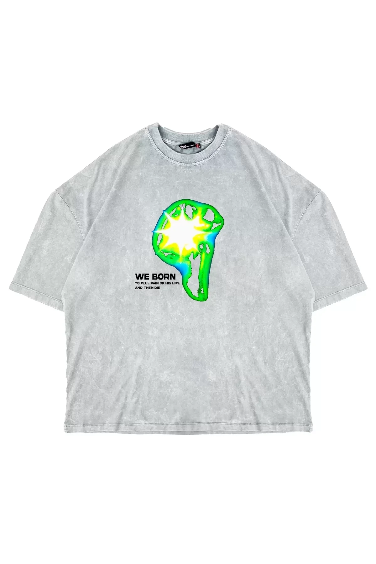 YIKAMALI BEYAZ WE BORN BASKILI OVERSİZE UNİSEX TSHİRT