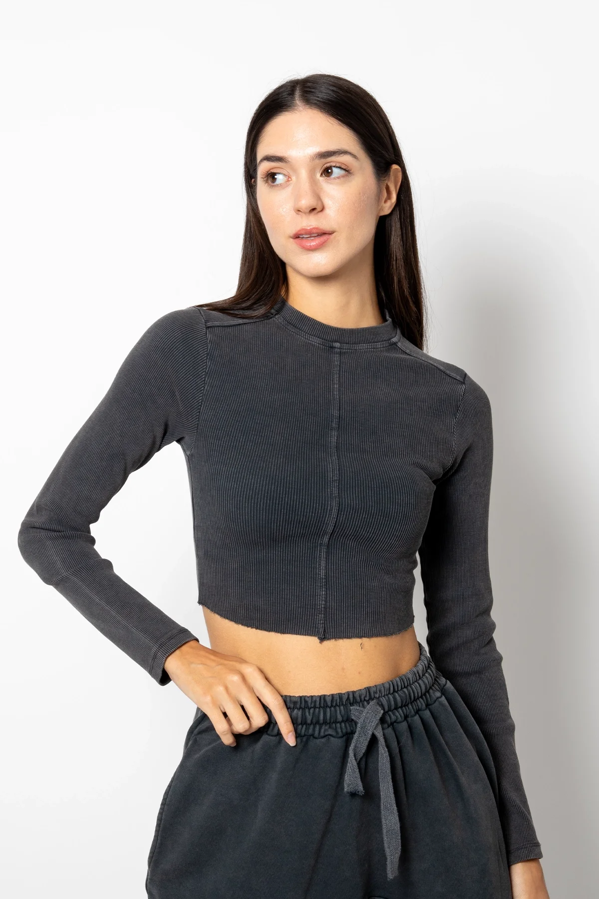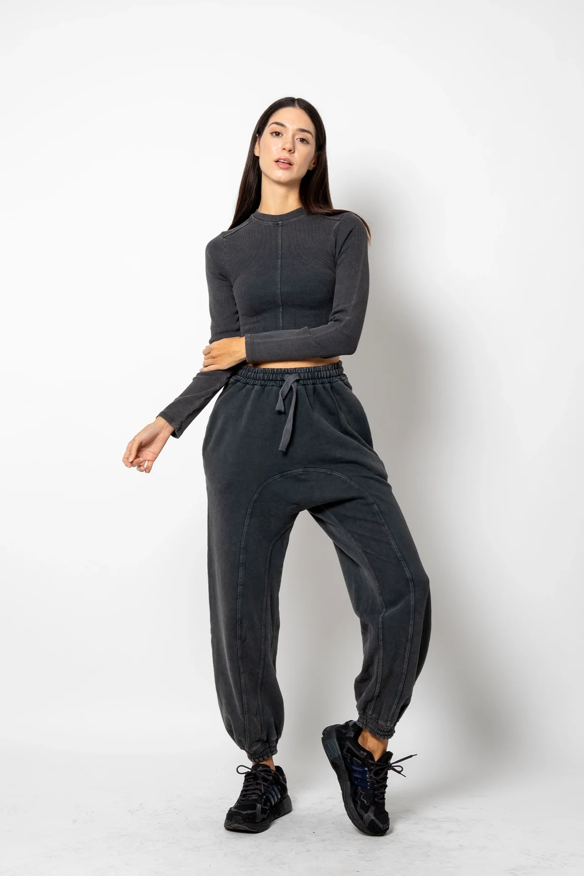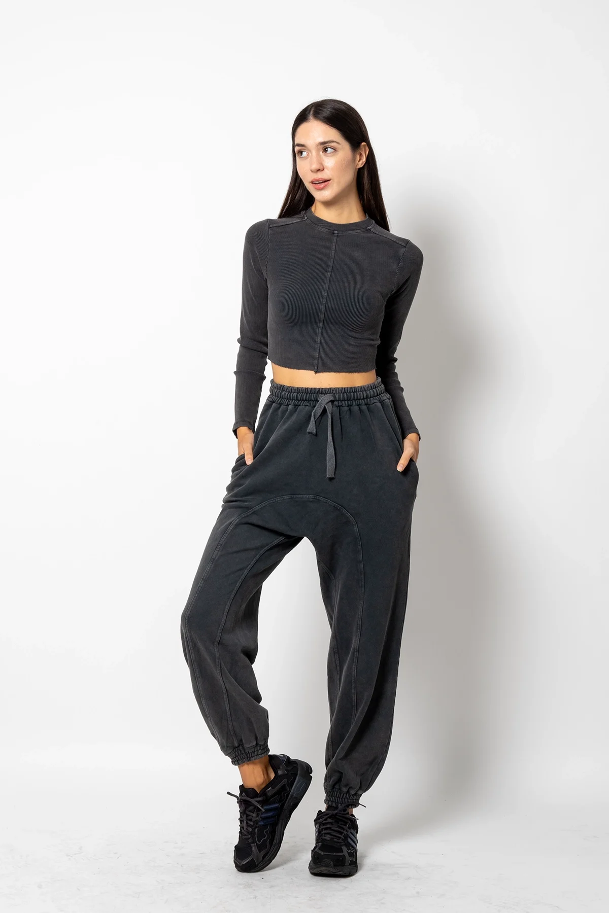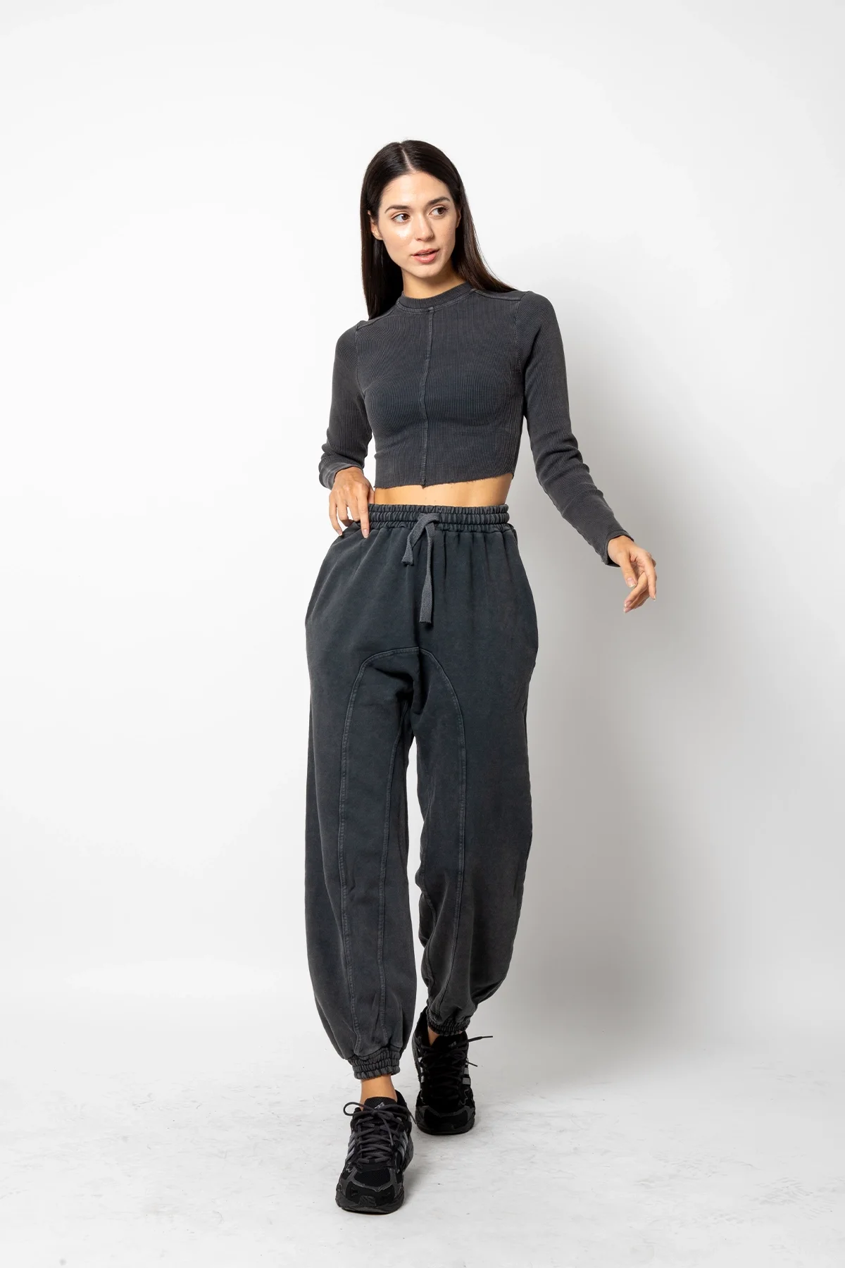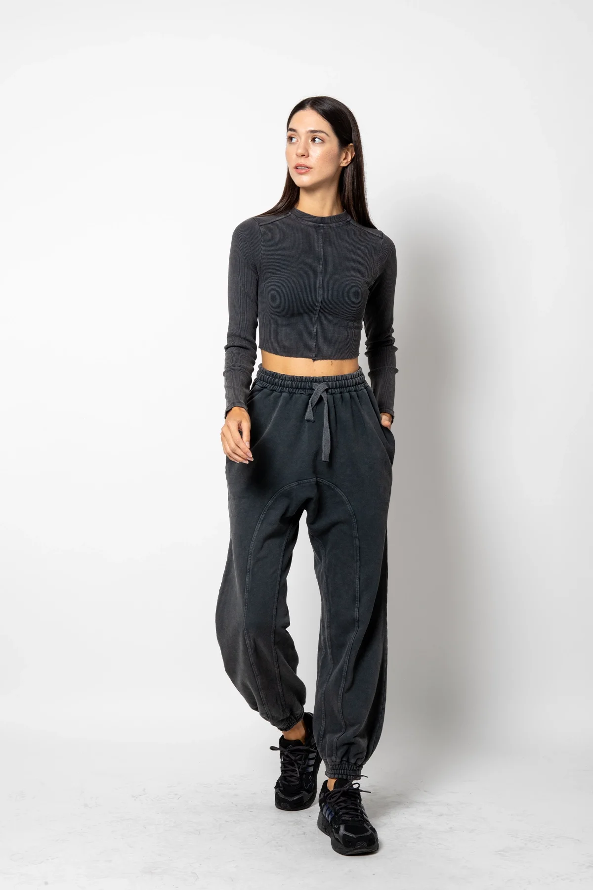 YIKAMALI DİKİŞ DETAYLI FÜME EŞOFMAN CROP TAKIM