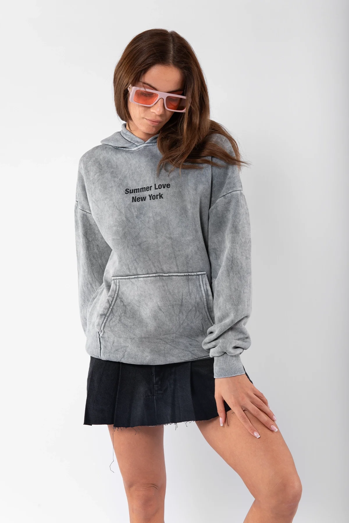 YIKAMALI BEYAZ SUMMER LOVE SIRT BASKILI OVERSİZE UNİSEX HOODİE