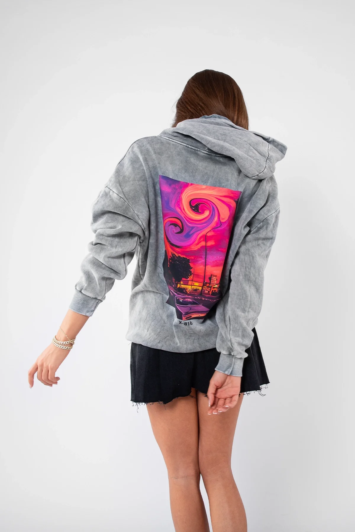 Psychotic Baskılı Oversize Unisex Siyah Hoodie