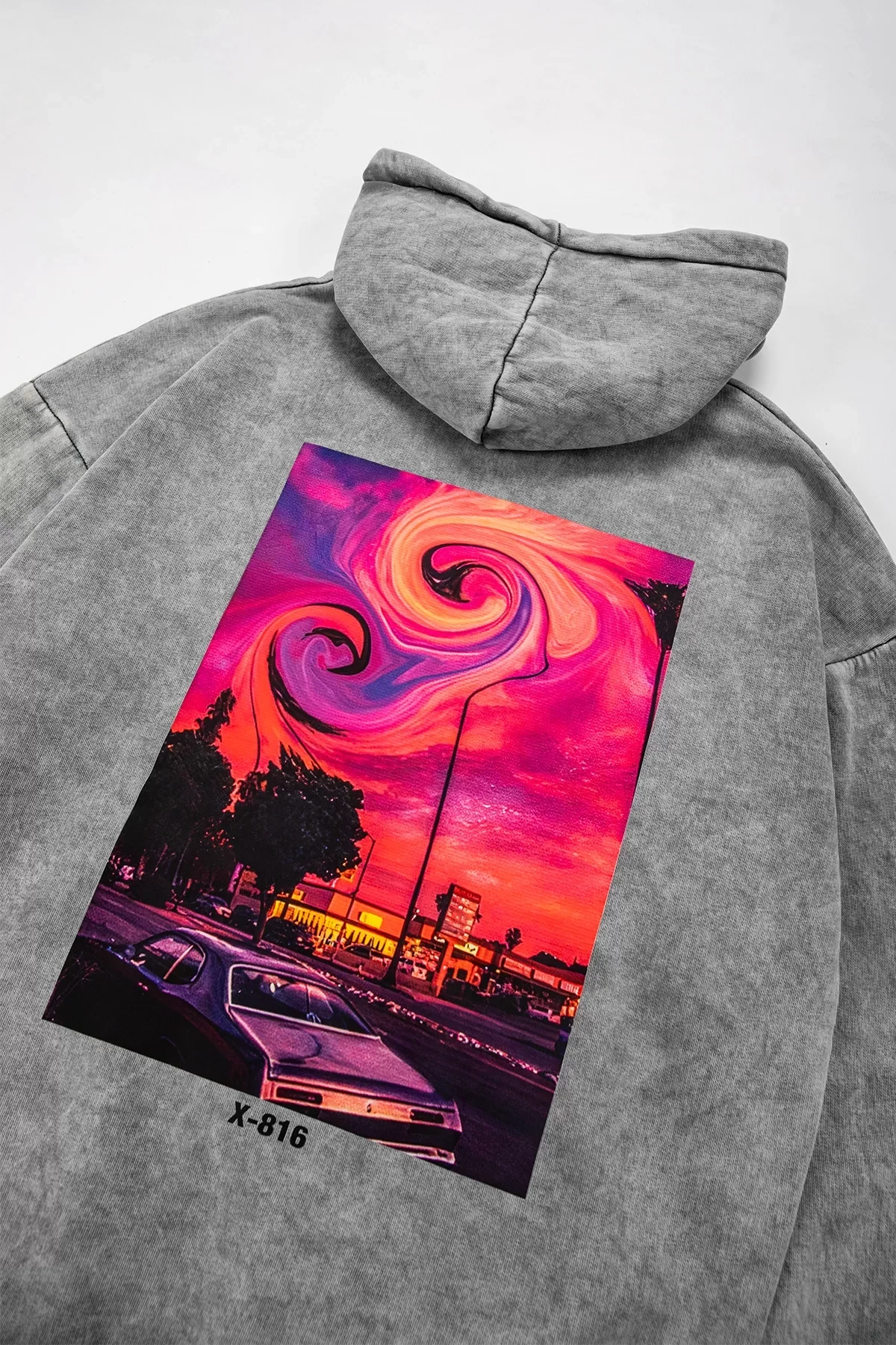1990 Baskılı Oversize Unisex Siyah Hoodie