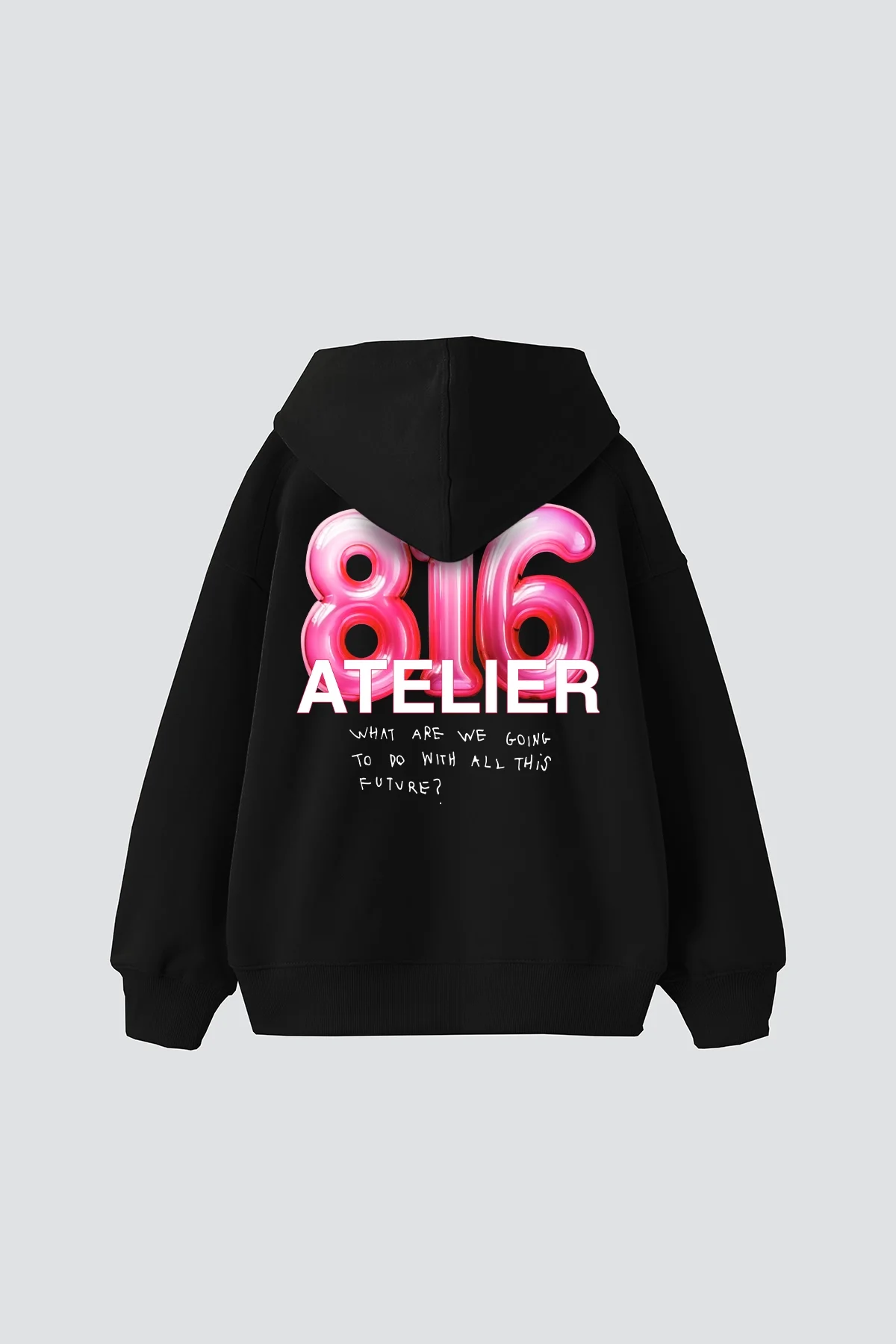 Stilini sade ama çarpıcı bir dokunuşla tamamla.816 Atelier Baskılı Hoodie, oversize kesimi ve zamansız Siyah rengiyle hem konforu hem tarzı bir araya getiriyor. Göğüs kısmındaki yazısı ve baskı detayıyla enerjik ve özgün bir görünüm sunar.