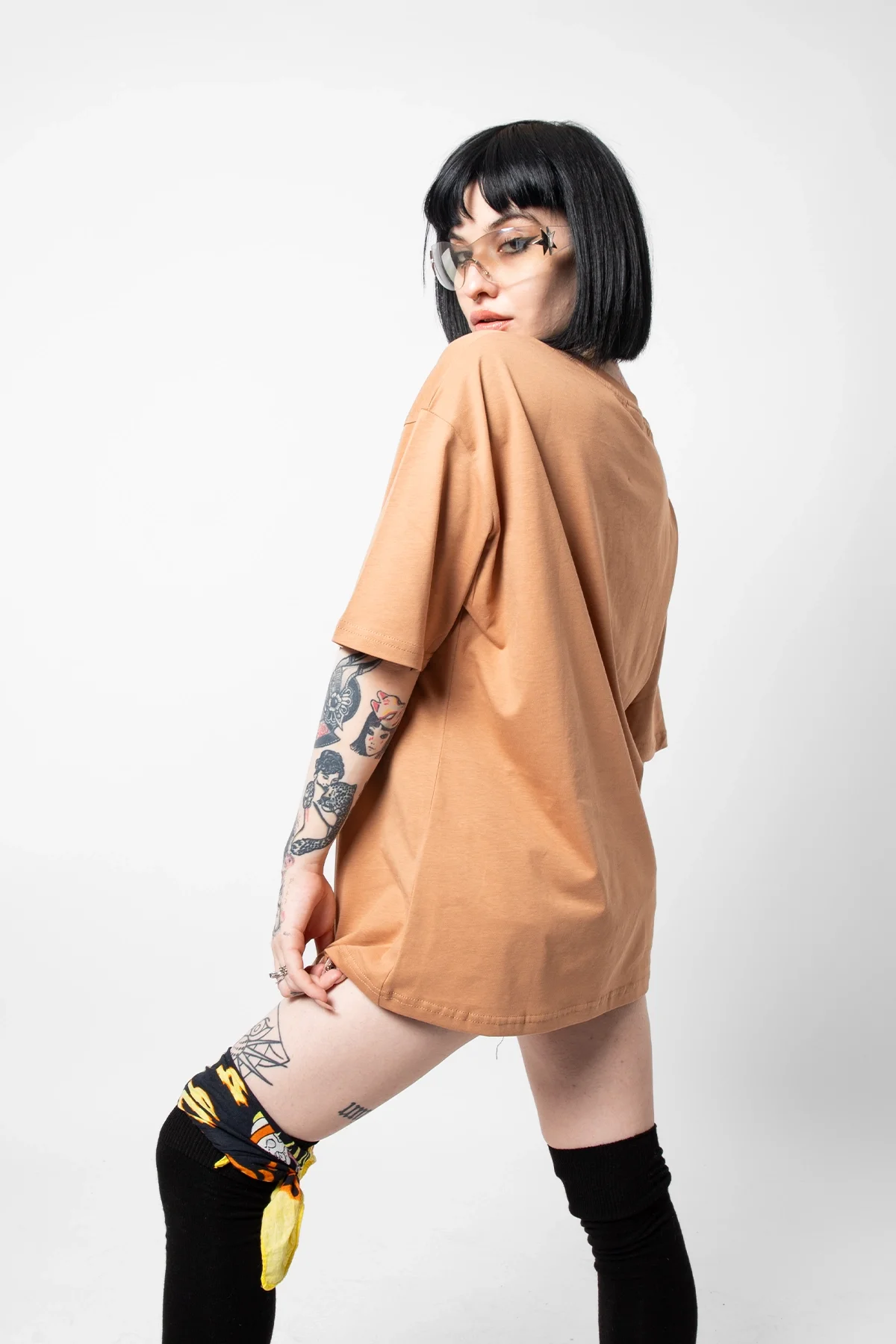 816 DESİGN KAHVERENGİ BASİC PREMİUM OVERSİZE TSHİRT