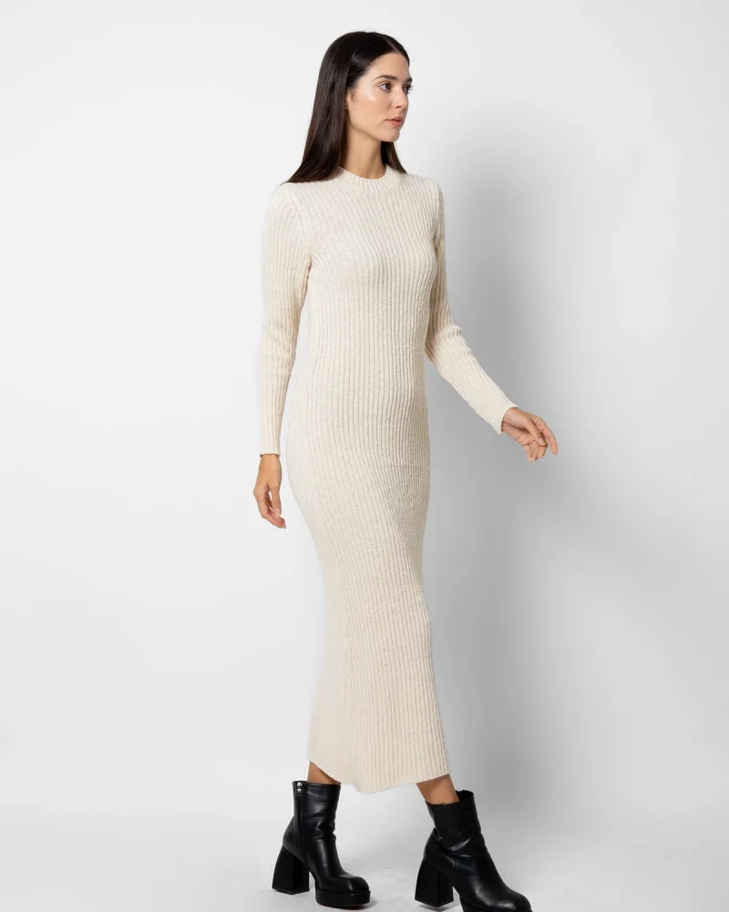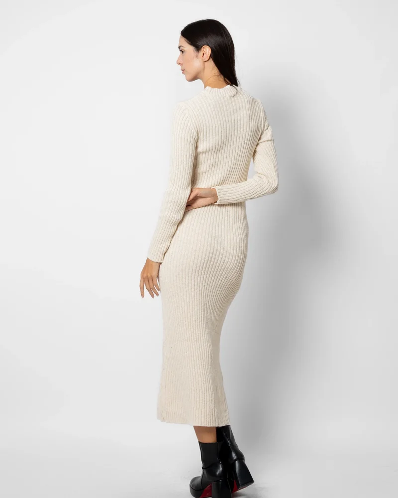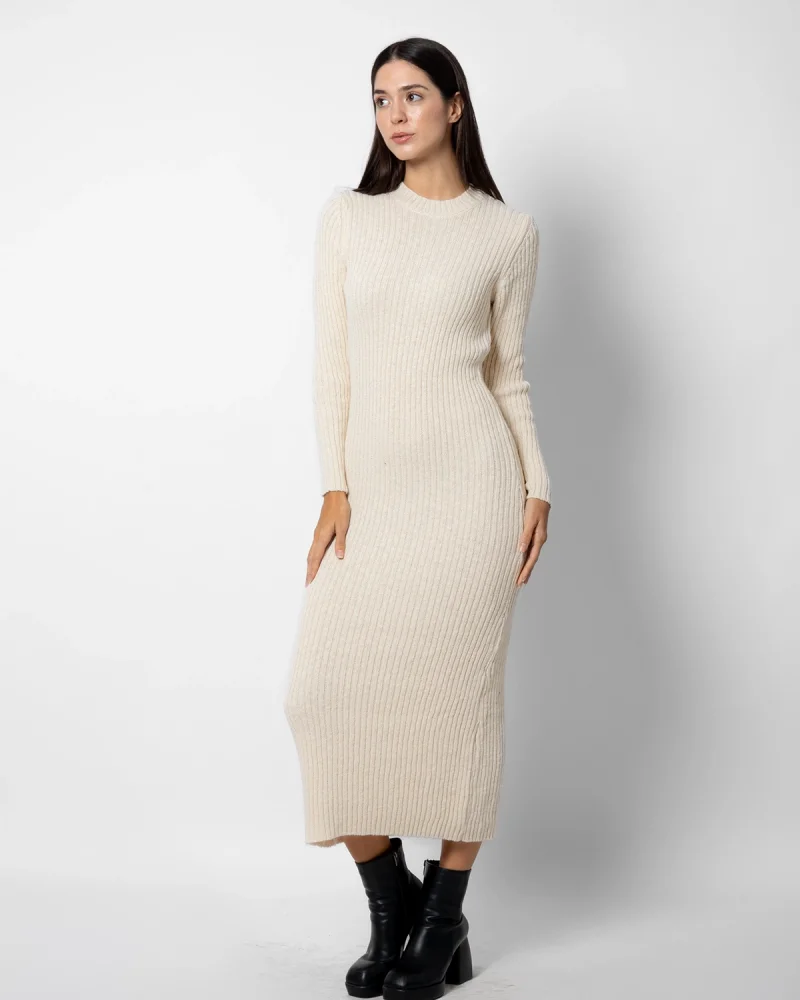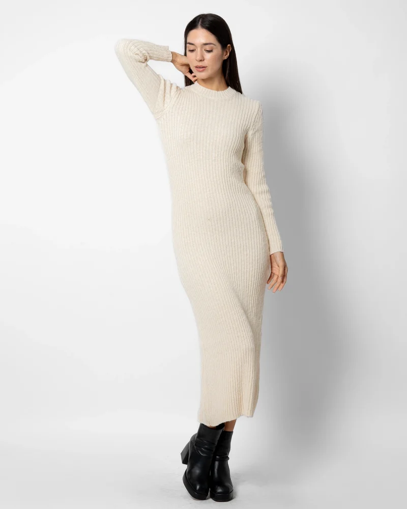 Basic Boğazlı Triko Yeşil Uzun Elbise