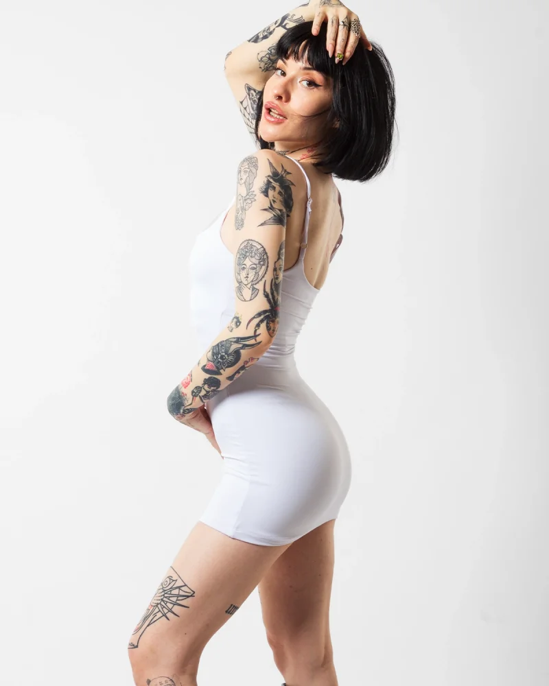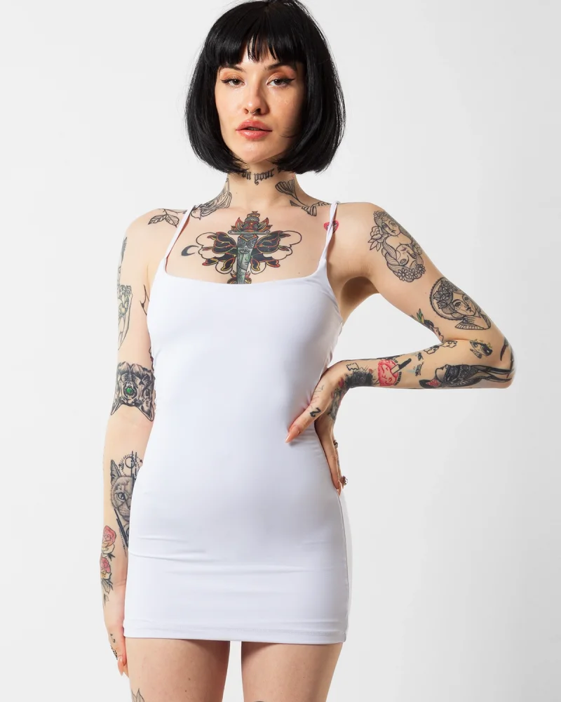Dantelli Bağlama Detaylı Straplez Beyaz Mini Elbise