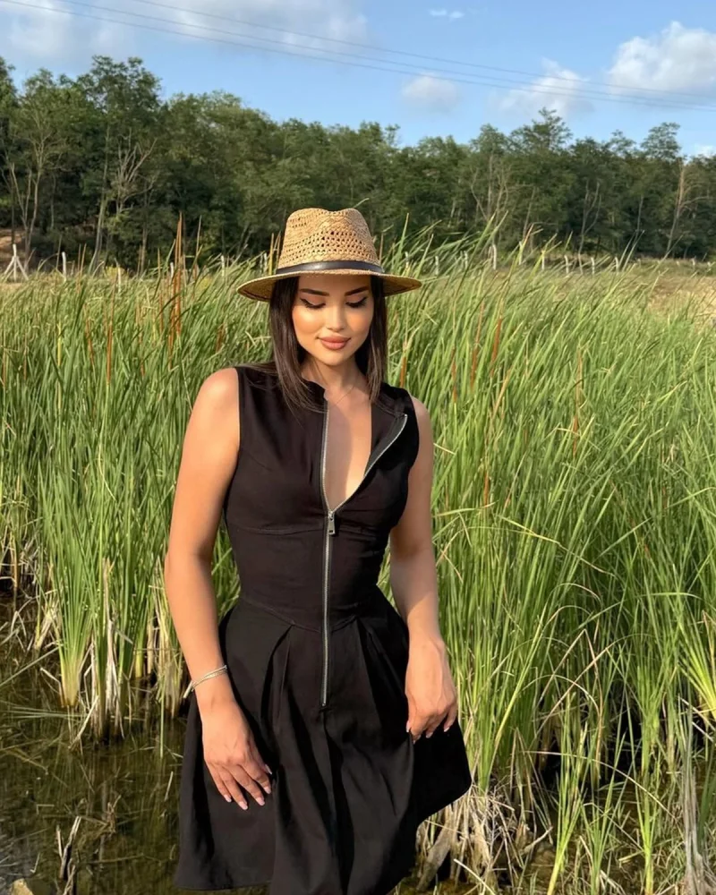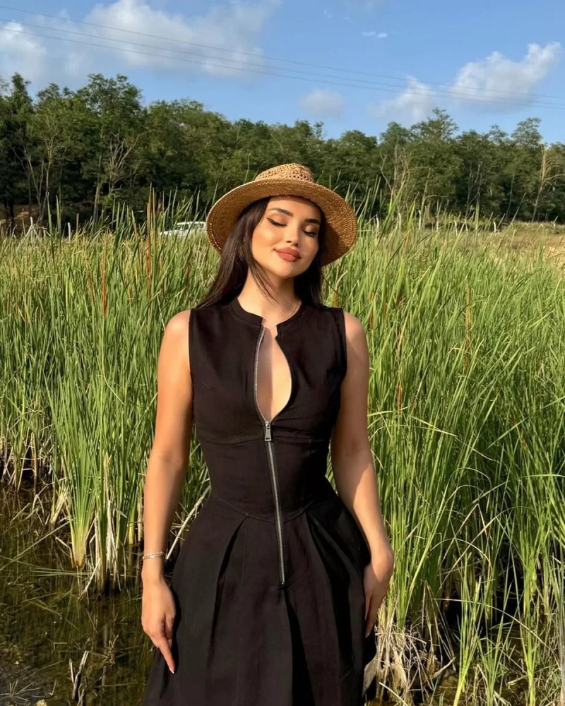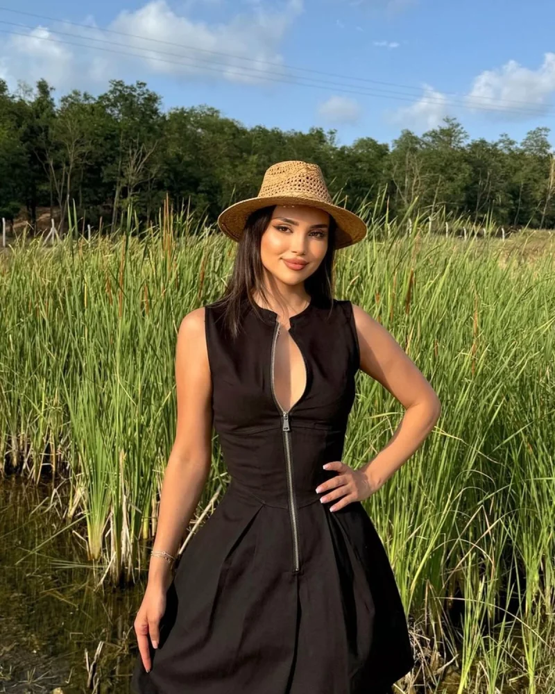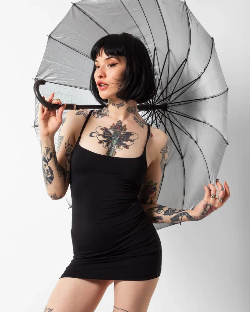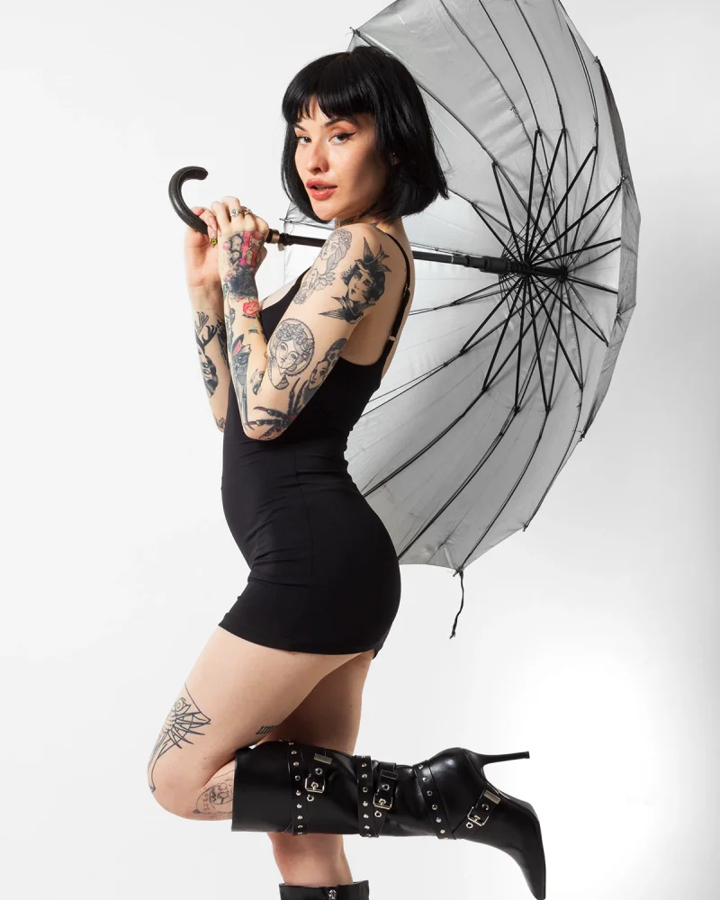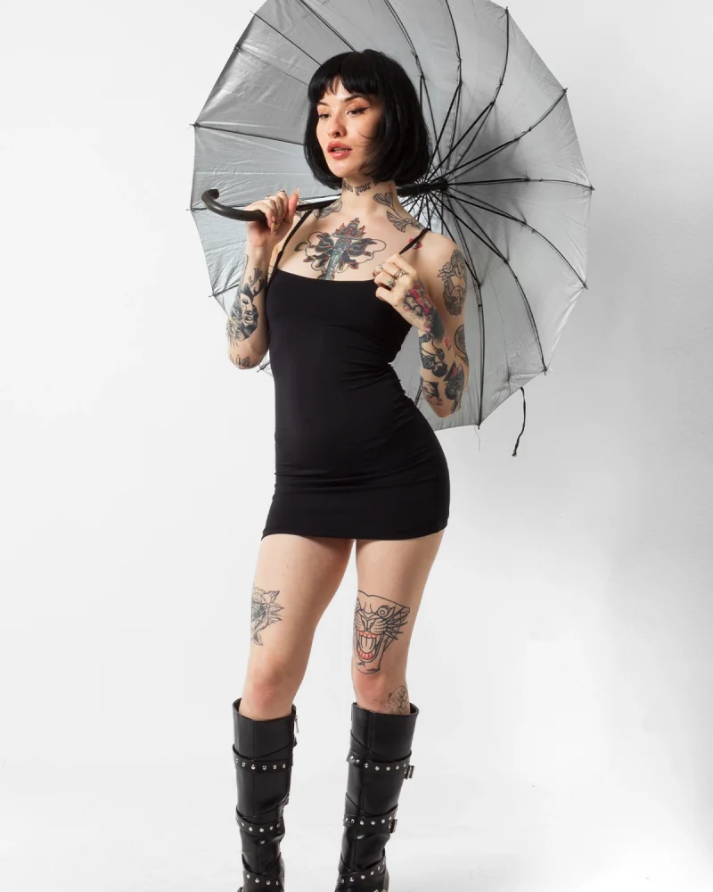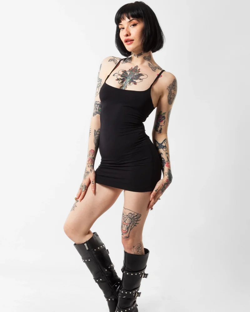 Yarım Fermuarlı Sıfır Kollu Siyah Mini Elbise