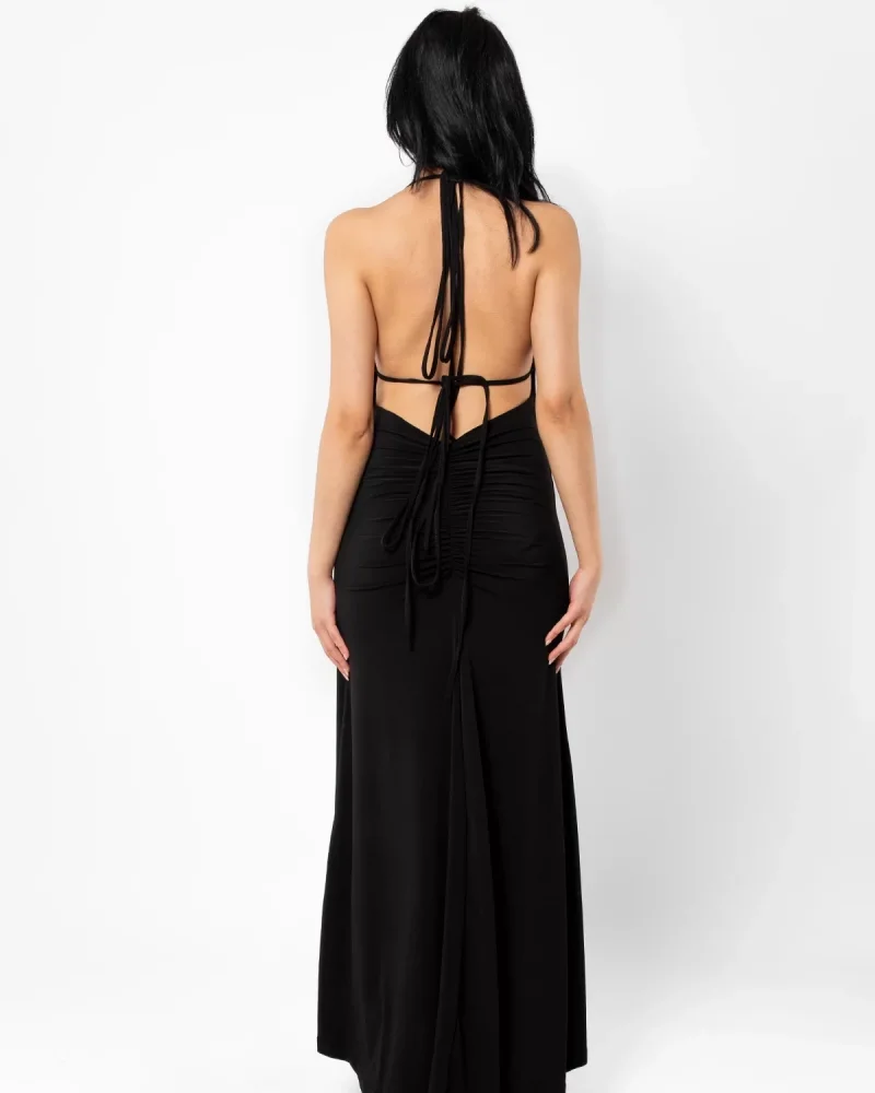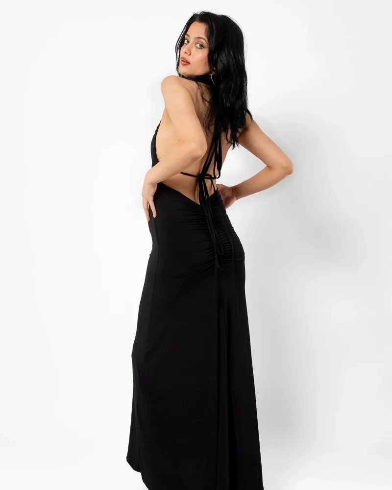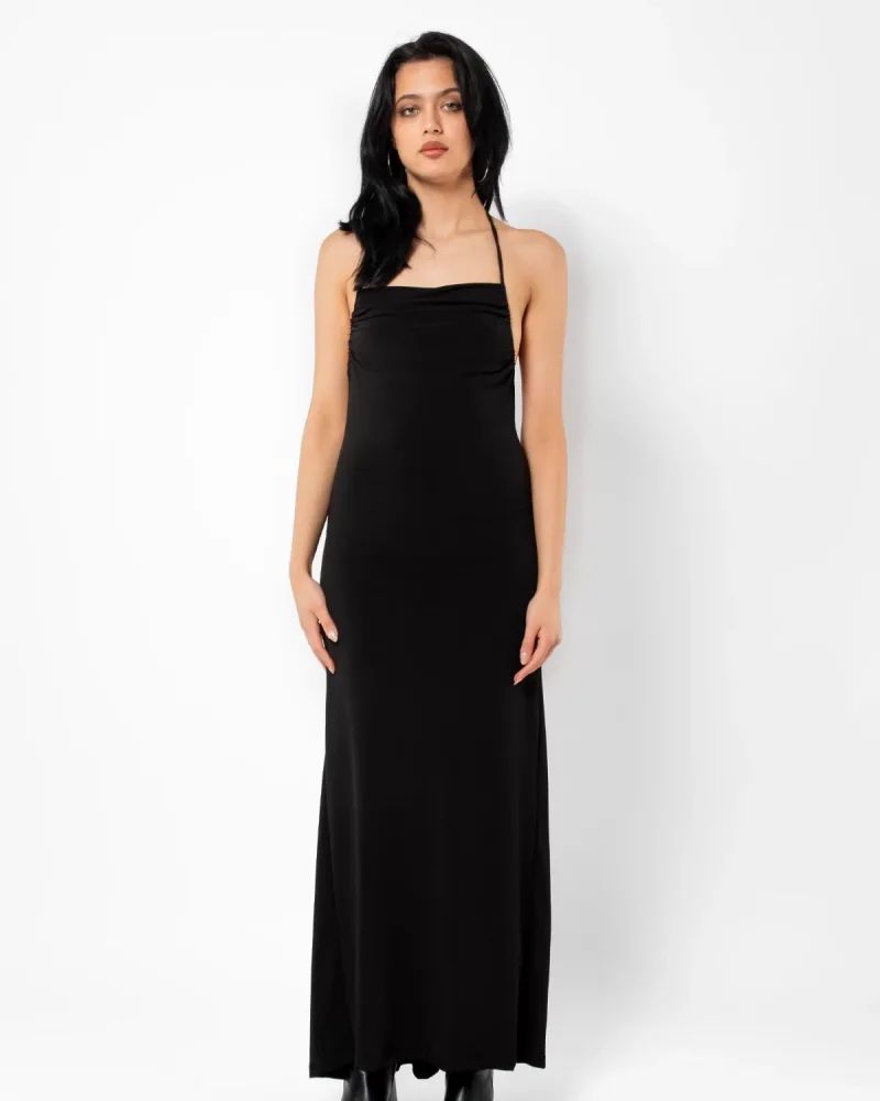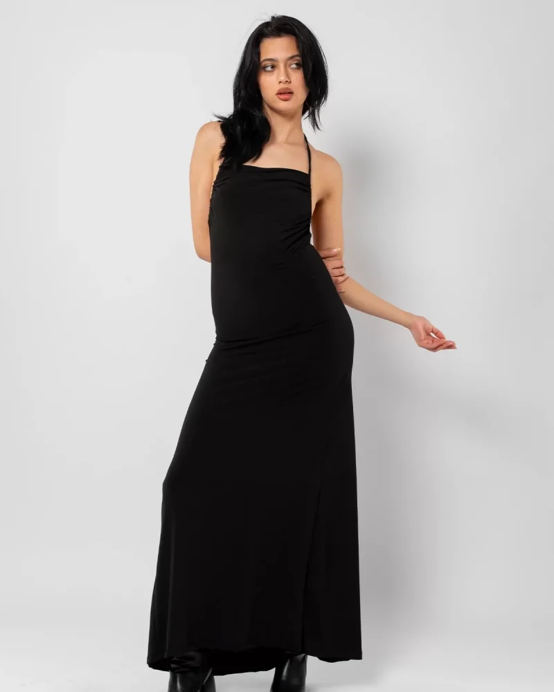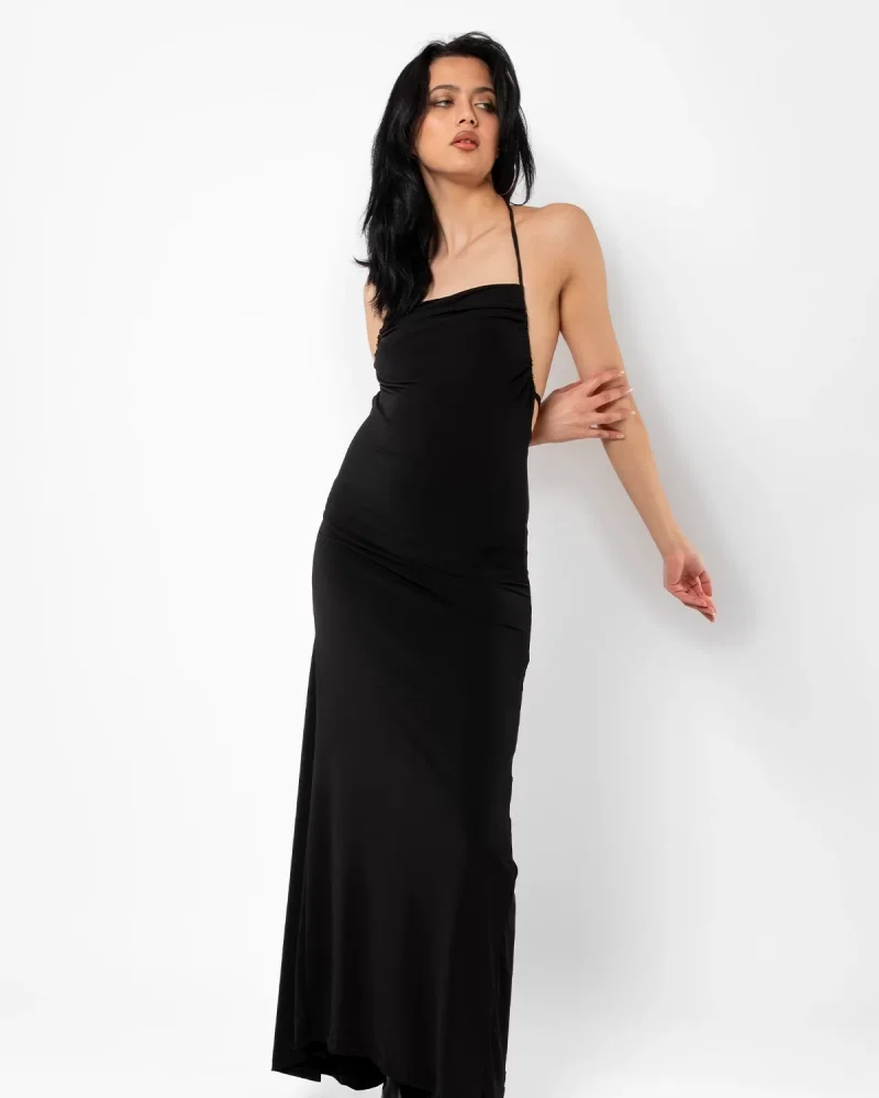 Ayar Askılı Uzun Sırt Dekolteli Siyah Elbise
