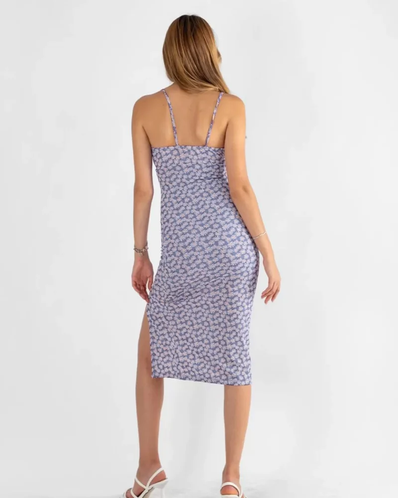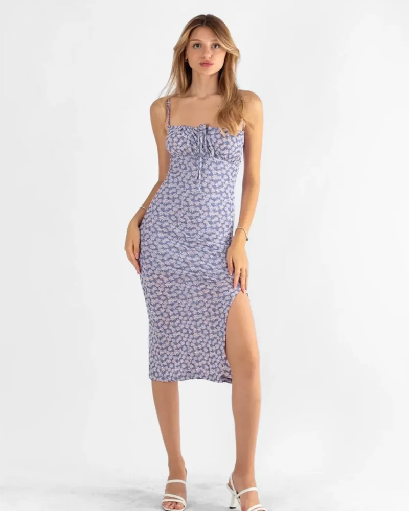 Baby Blue Çiçek Desenli Astarlı Elbise